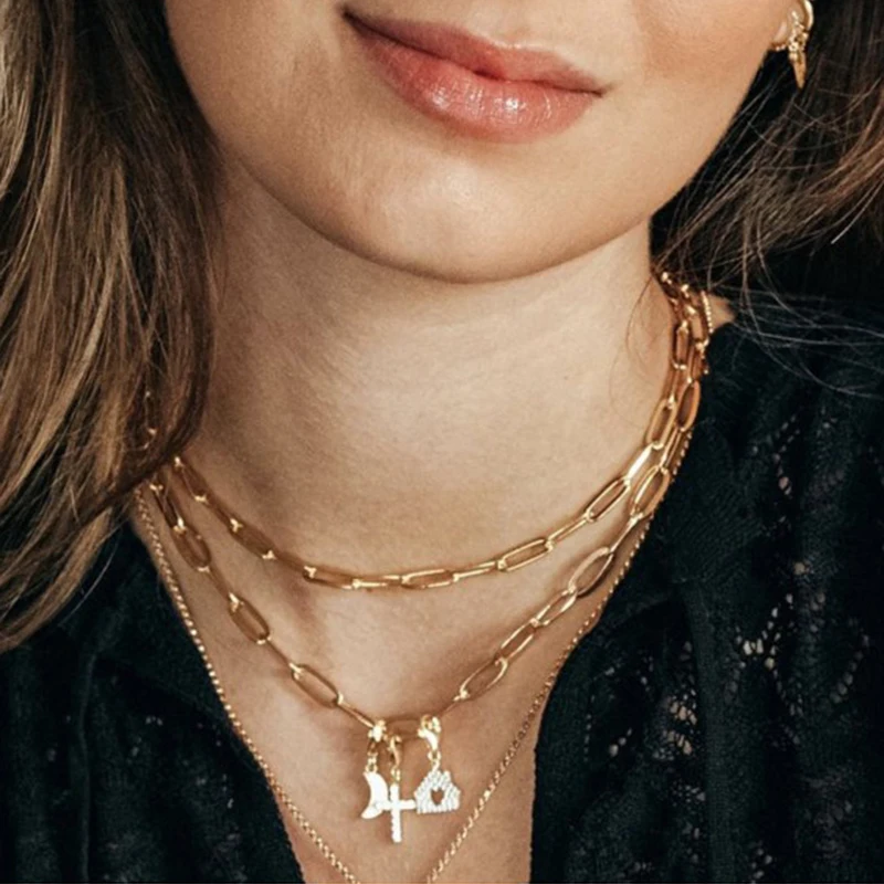 MC 925 стерлингового серебра ожерелья для женщин цепочки на ключицы колье-чокер с солнце и луна золотая пластина Кулоны из нержавеющей стали для вечерние колье-чокер