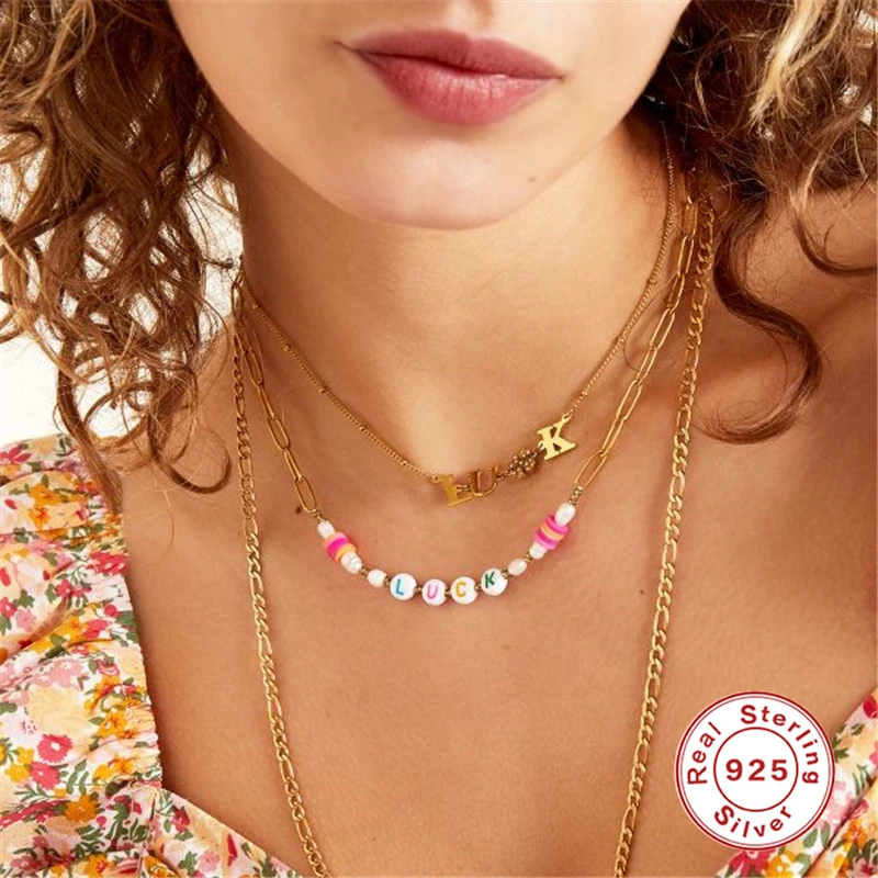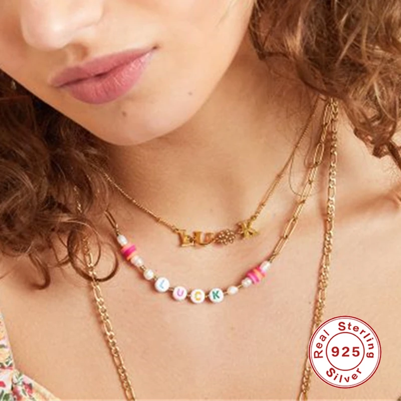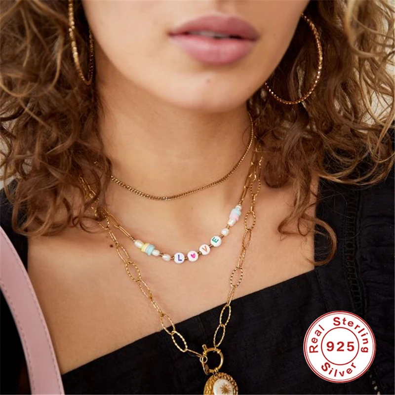 Женское колье ручной работы из серебра 925 пробы, чокер из серебра ювелирные изделия, цепочка с подвеской пробы с стеклянным жемчугом