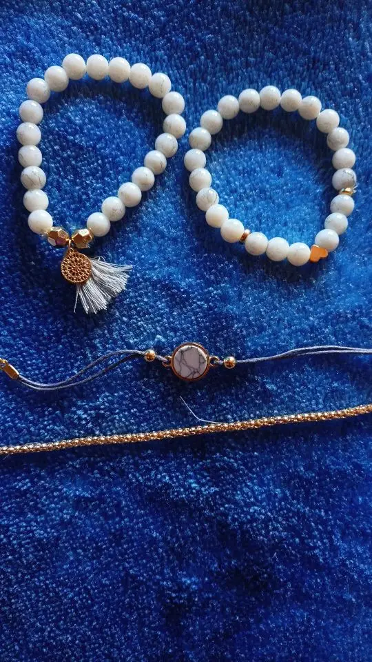 Набор браслетов 4 шт.компл., бусины из белого камня, золотистые акс...