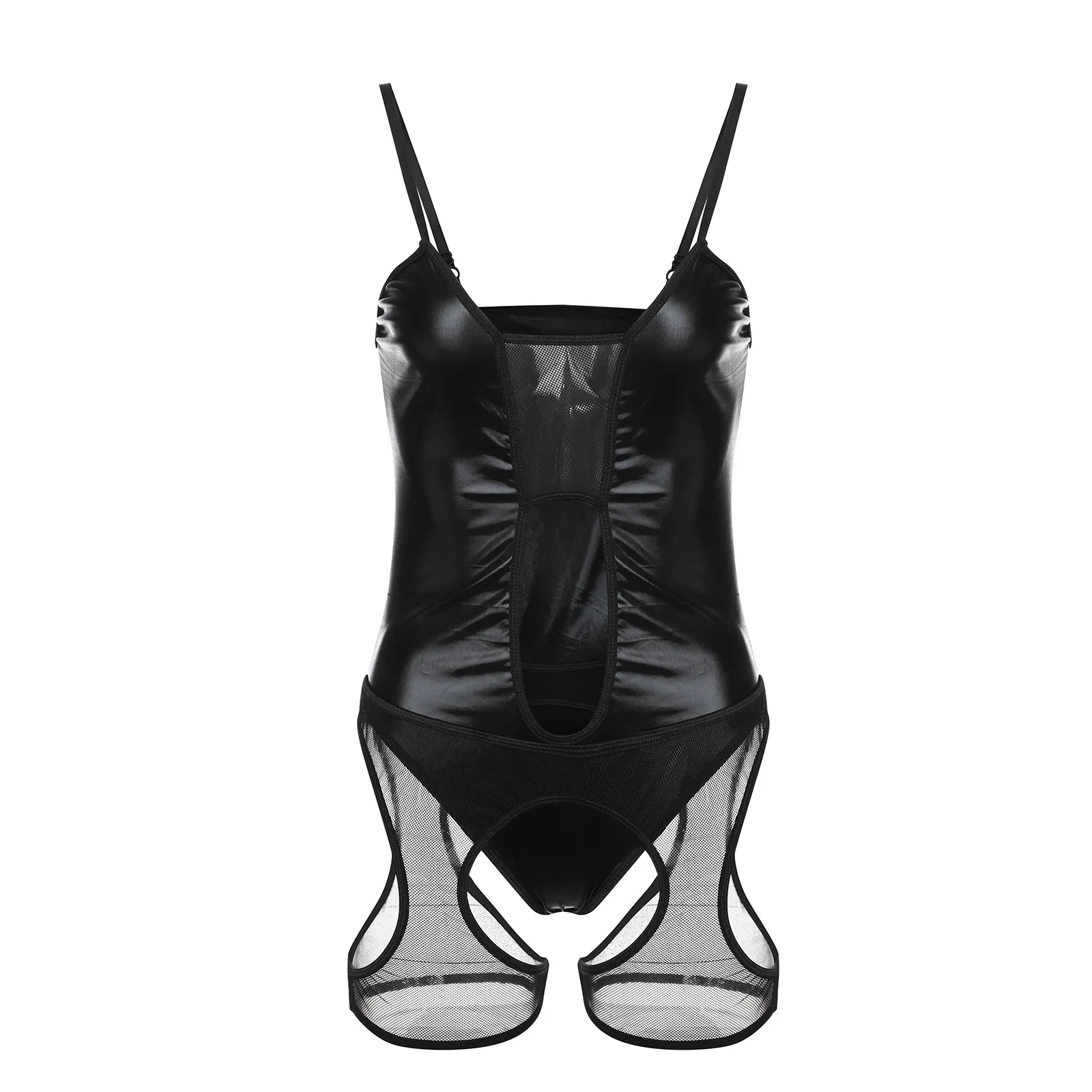 Чувственное белье Женское боди из кожи и сетки сексуальное боди, женское белье, сексуальное нижнее белье, Корректирующее Белье нижнее бельё секс Тэдди размера плюс