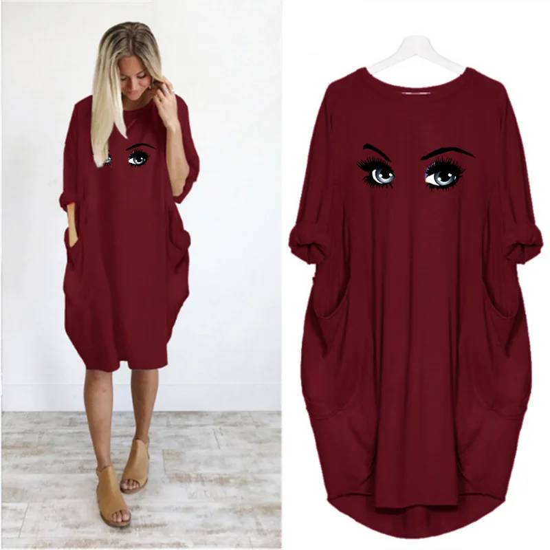 Осеннее свободное платье, женское платье средней длины с 3D принтом, Простое Повседневное платье с длинным рукавом и круглым вырезом в стиле ретро, Vestidos Mujer