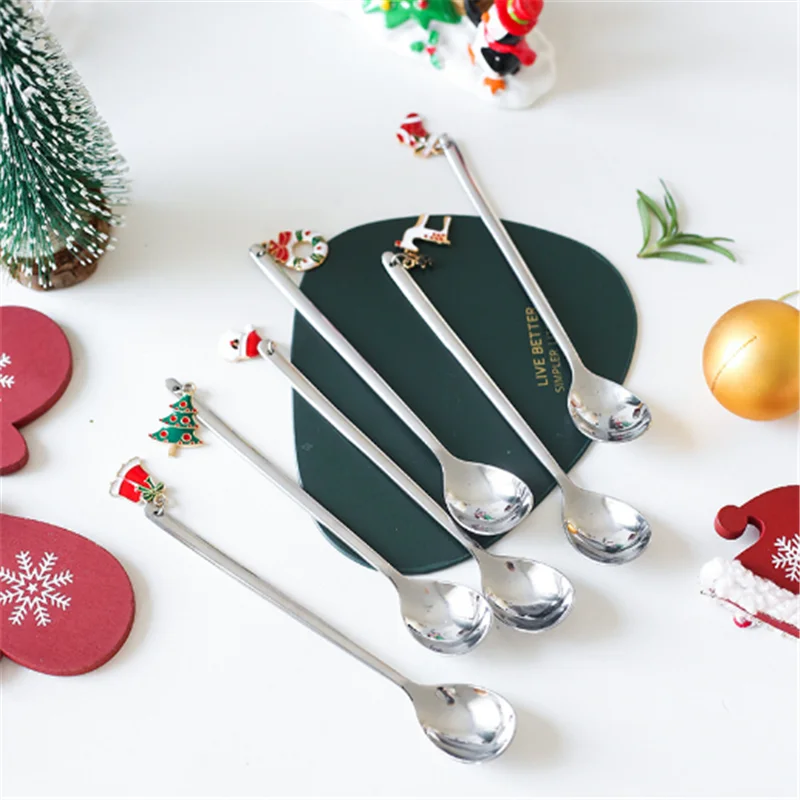 Домашнее рождественское украшение из нержавеющей стали, лось, снеговик, подвеска на елку, ложка 2022, новогодний Рождественский подарок для детей, Navidad