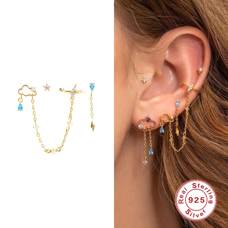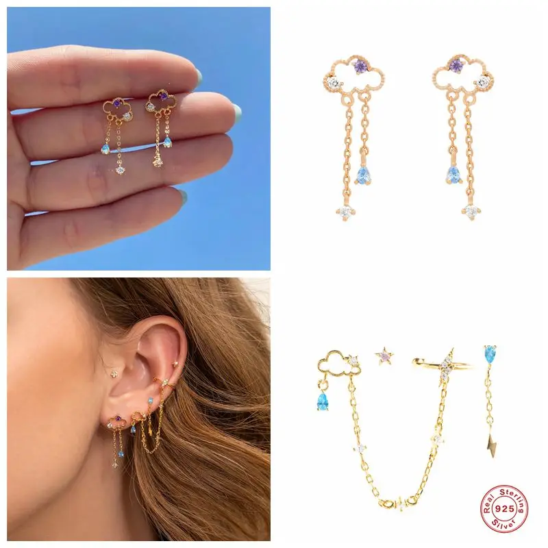 MC 925 стерлингового серебра серьги простой творчества Облако серьги-гвоздики для женщин Цвет Zircon серьги, модное ювелирное изделие, подарок