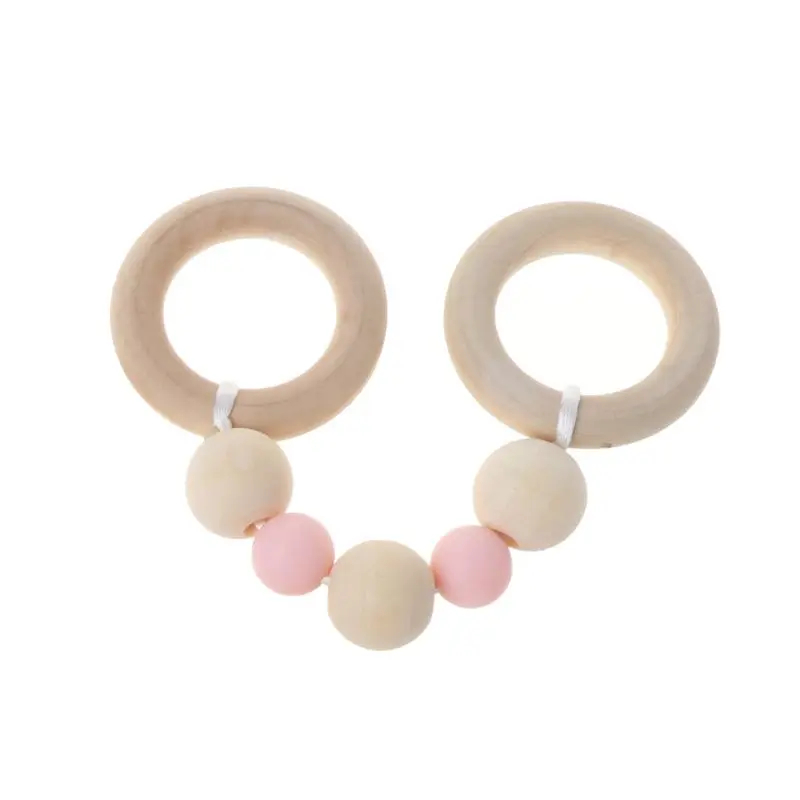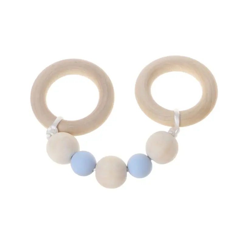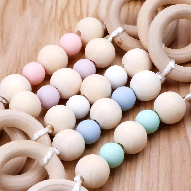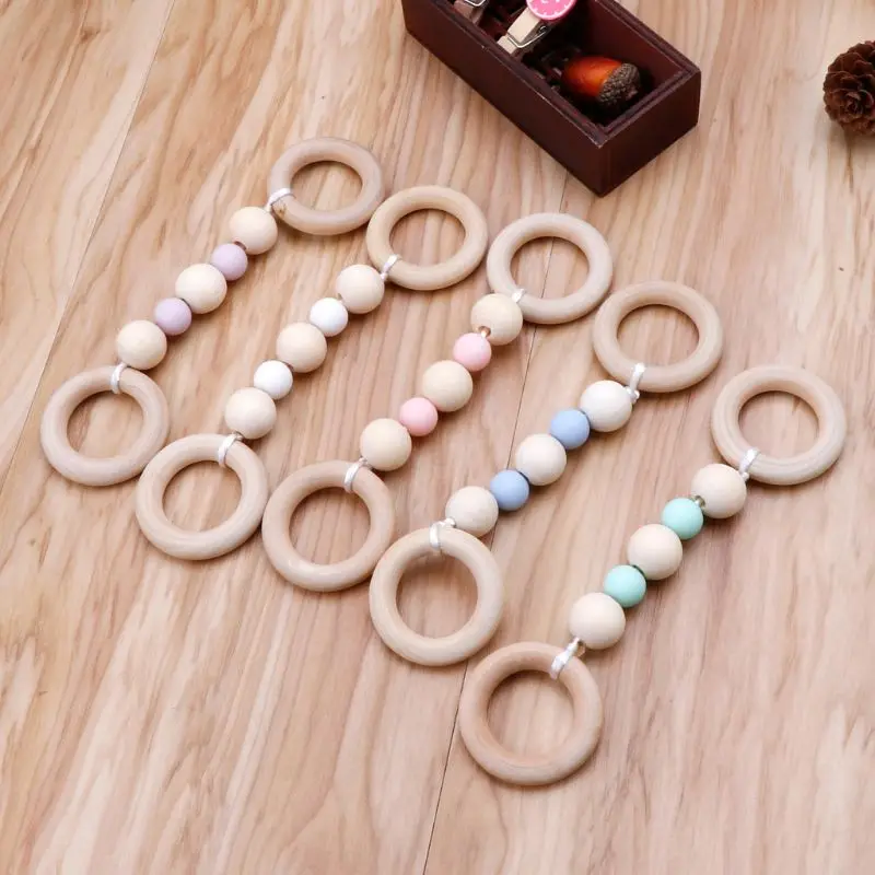 Детские игрушки Монтессори, буковое деревянное кольцо, силиконовые бусины, деревянная погремушка