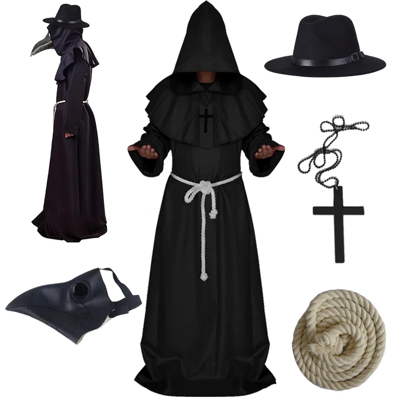 Костюм Чумного доктора для косплея, средневековый Халат с капюшоном, ужасная маска в стиле стимпанк, шляпа, Хэллоуин, ролевая игра, волшебник, священник, христианский костюм