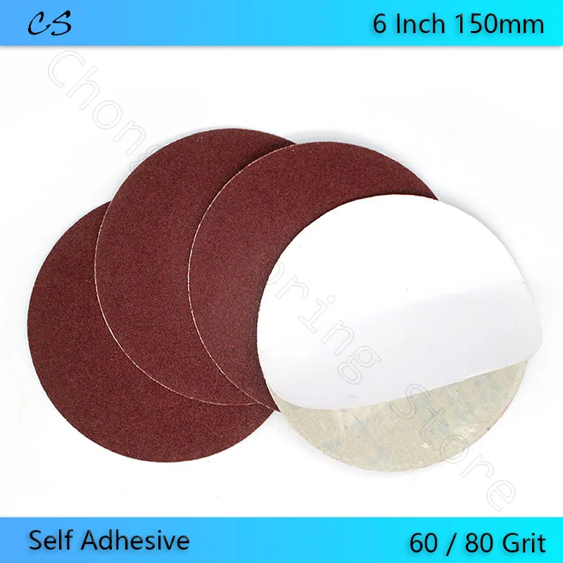 Самоклеящиеся шлифовальные диски, 6 дюймов, 150 мм, оксид алюминия, красная зернистая наждачная бумага для сухого шлифования, зернистость 60, 80, для шлифовки и полировки
