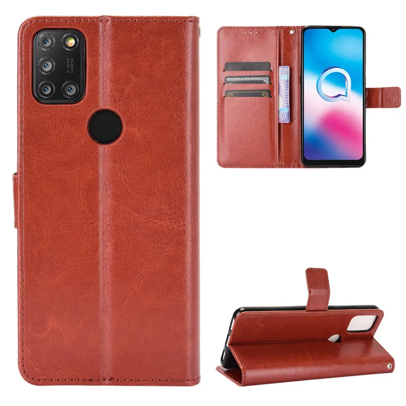 Кожаный флип-чехол для Alcatel 3X 2020, Ретро Магнитный флип-чехол для телефона