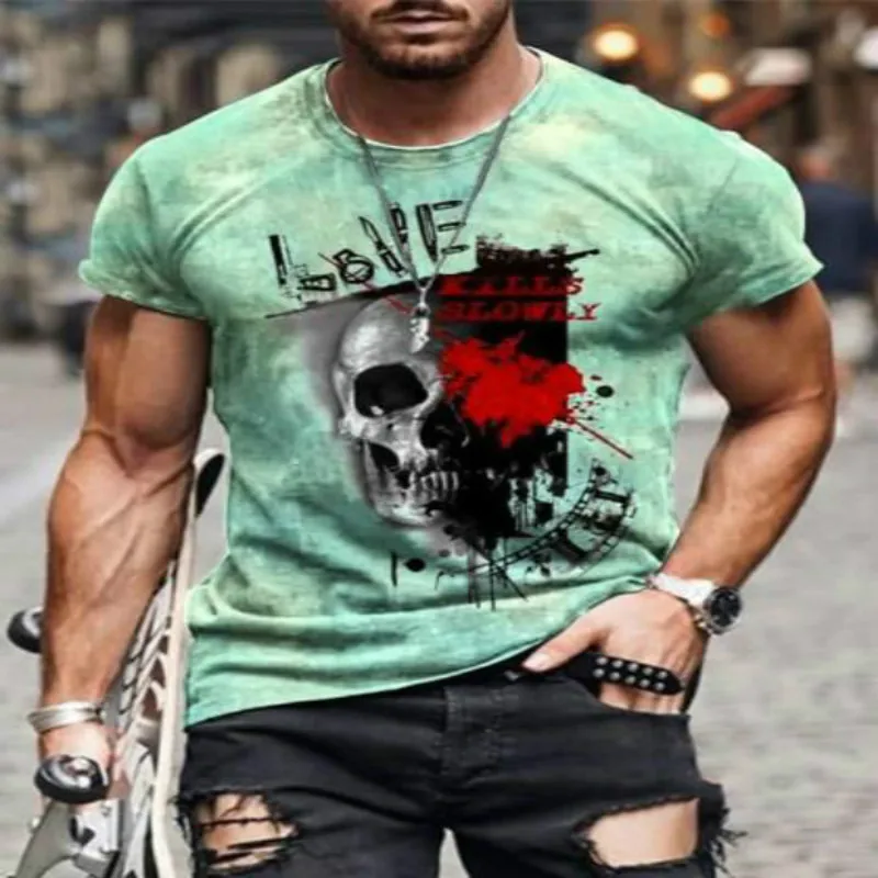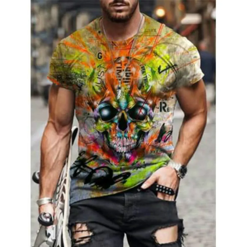 Мужская футболка с готическим 3D-принтом, Летняя Повседневная рубаш...