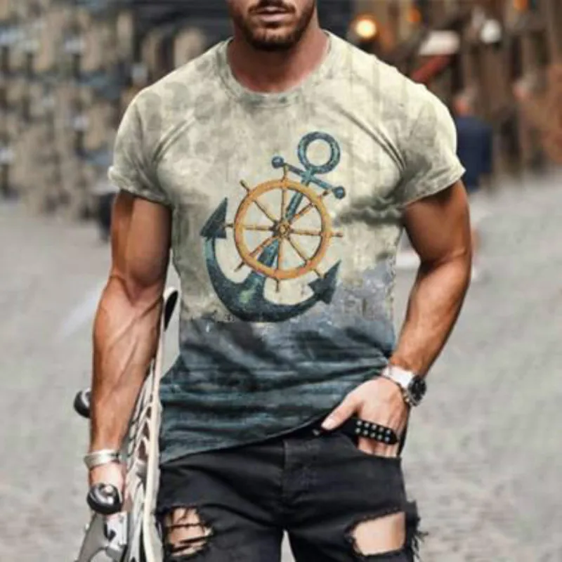 Мужские футболки с принтом Compass-3D, уличная одежда в стиле ретро...