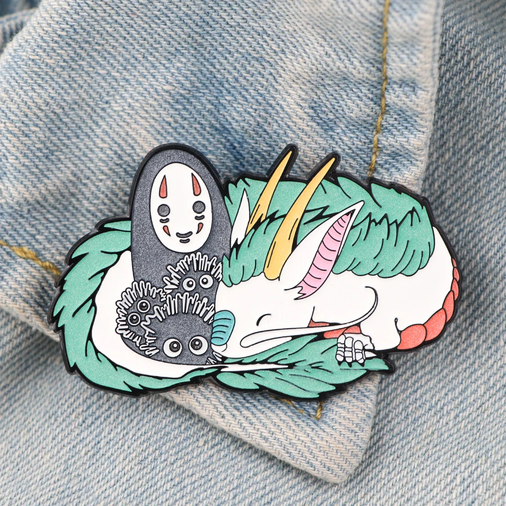 Жесткие эмалевые заколки No Face Man с белым драконом, Коллекционир...