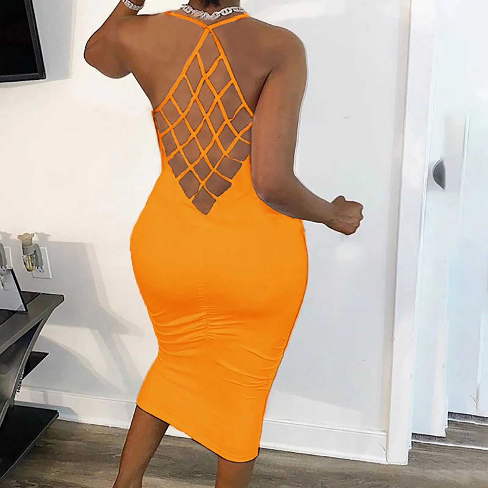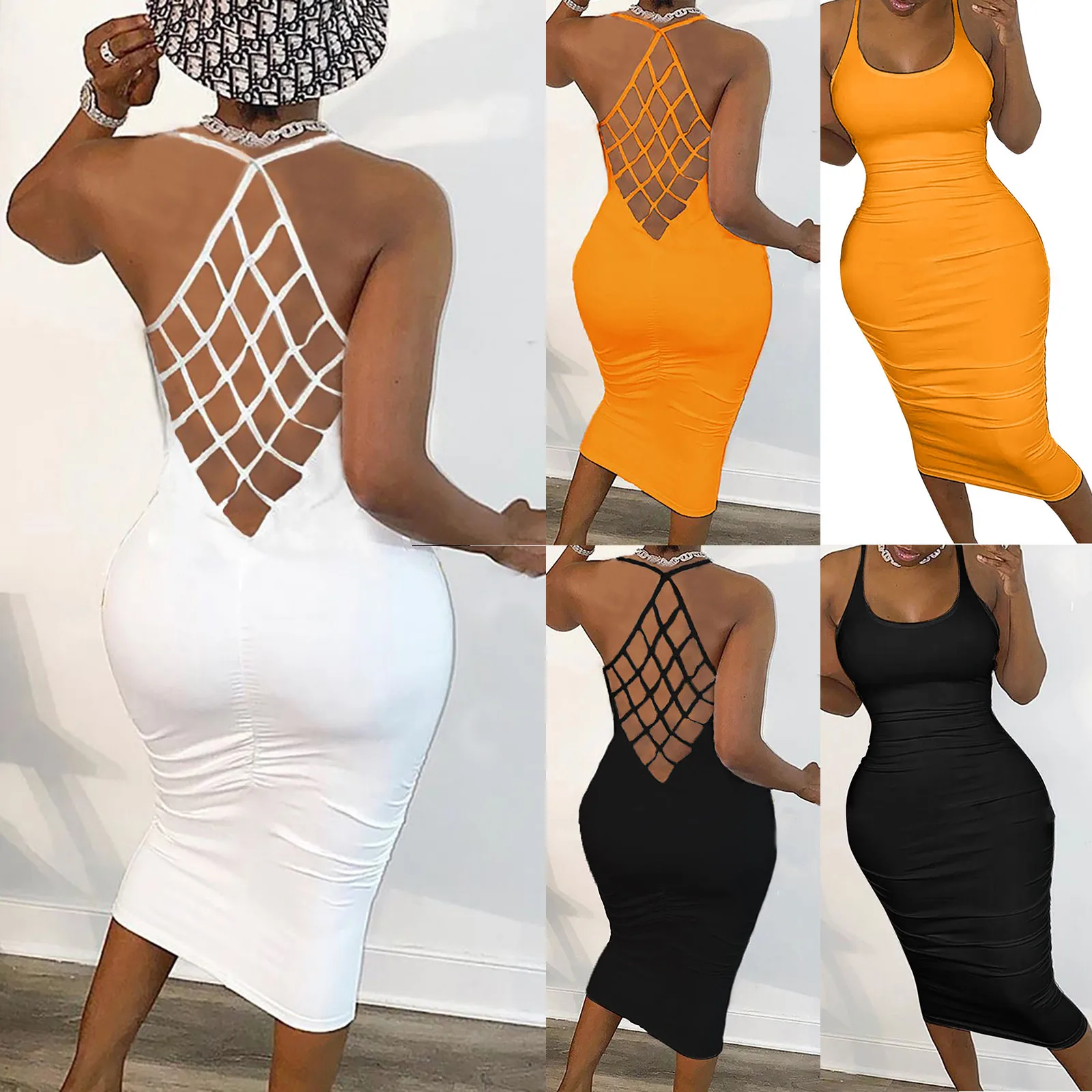 Новые женские платья, модное однотонное платье с лямкой через шею и круглым вырезом, сексуальное длинное платье, повседневные женские платья