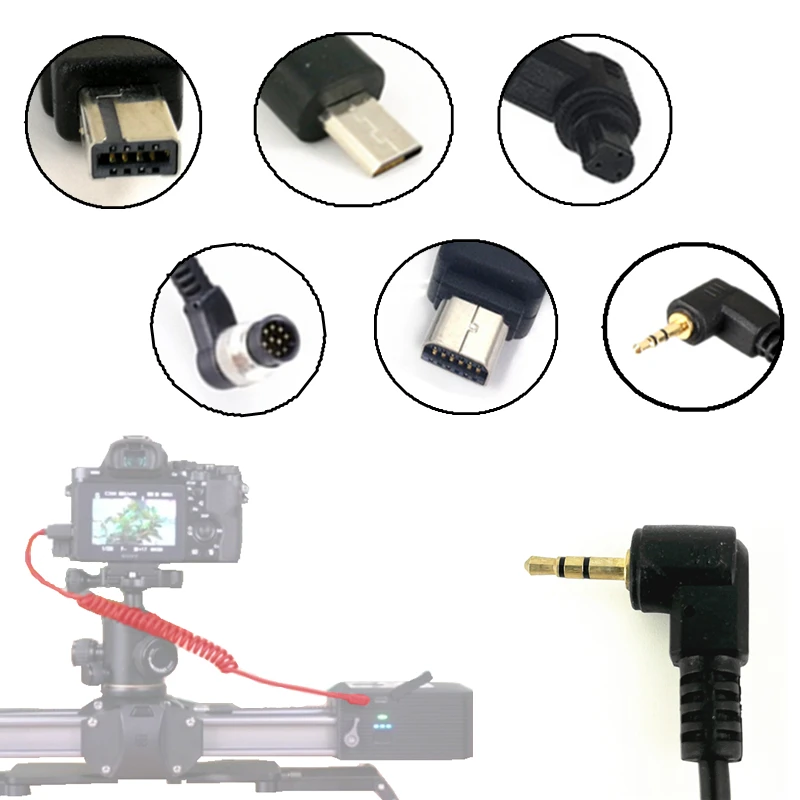 Один конец 2,5 мм до Zeapon ползунки, другой конец камера розетка для подключения к удаленный доступ к камере/затвора порт.