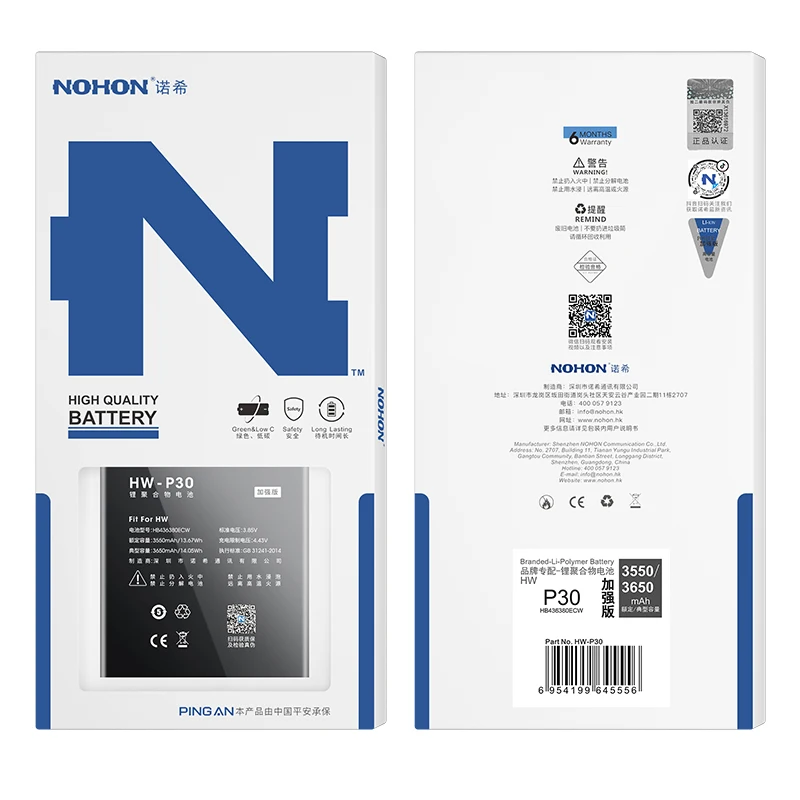 Аккумулятор NOHON литиевый для Huawei P30 P20 P10 P9 Lite P8 HB4363...