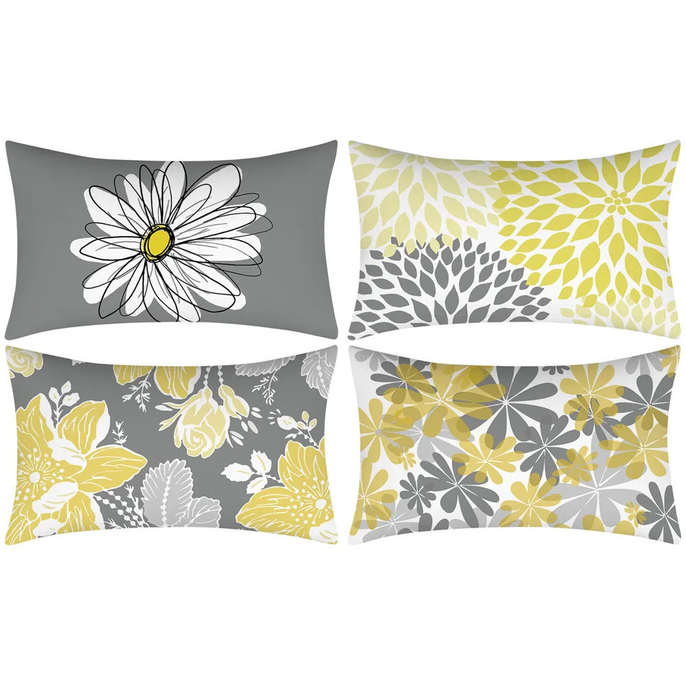 Дейзи цветок чехол для подушки 30x50 наволочка из полиэстера Декоративные диванные подушки мультипликационным мотивом домашний декор желтого и серого цвета на Наволочки