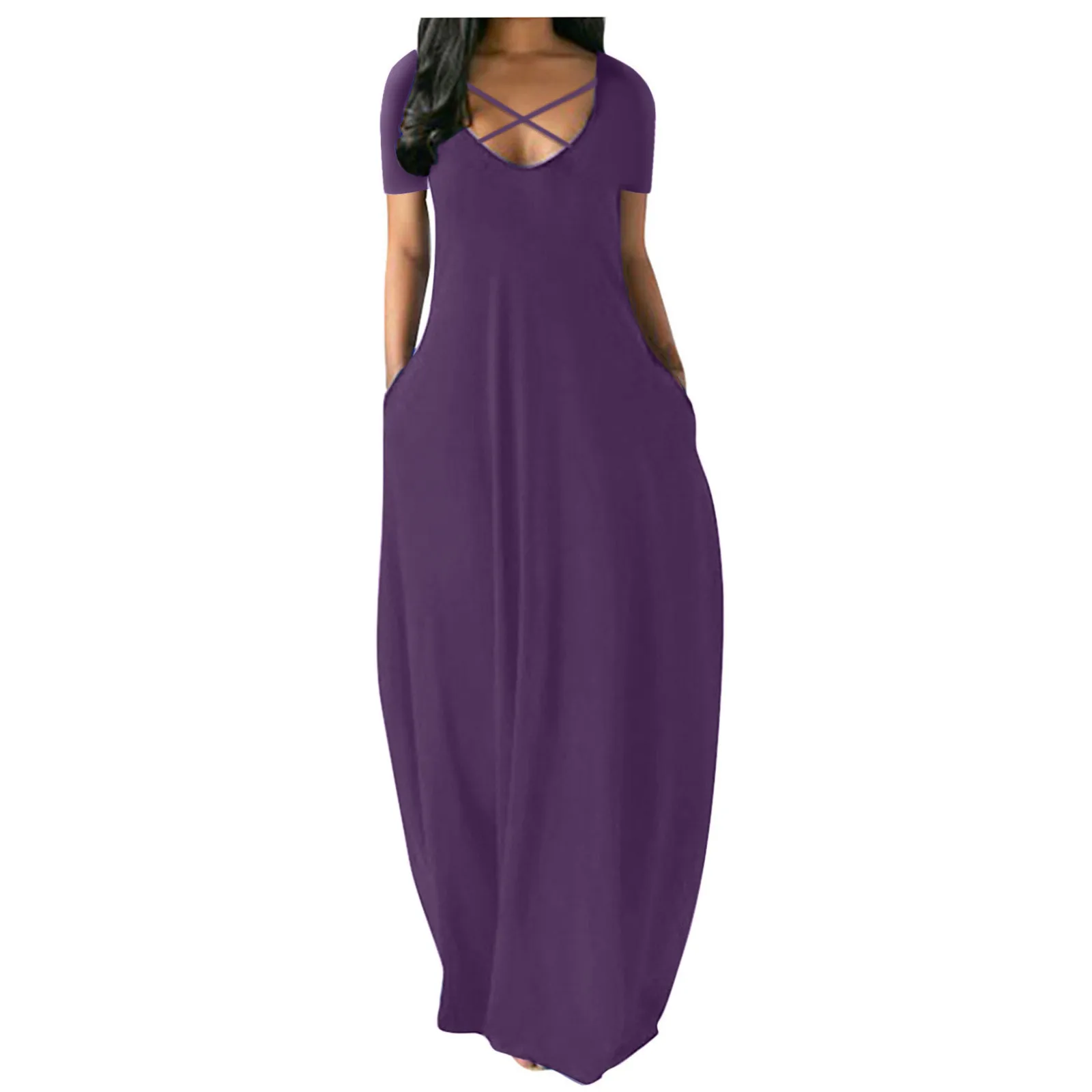 Женская летняя обувь размера плюс, повседневные однотонные платья Женская модная обувь большого размера с u-образным вырезом без рукавов с карманами длинное платье vestidos mujer