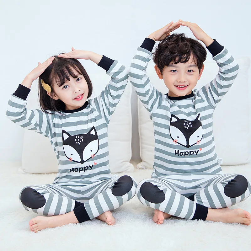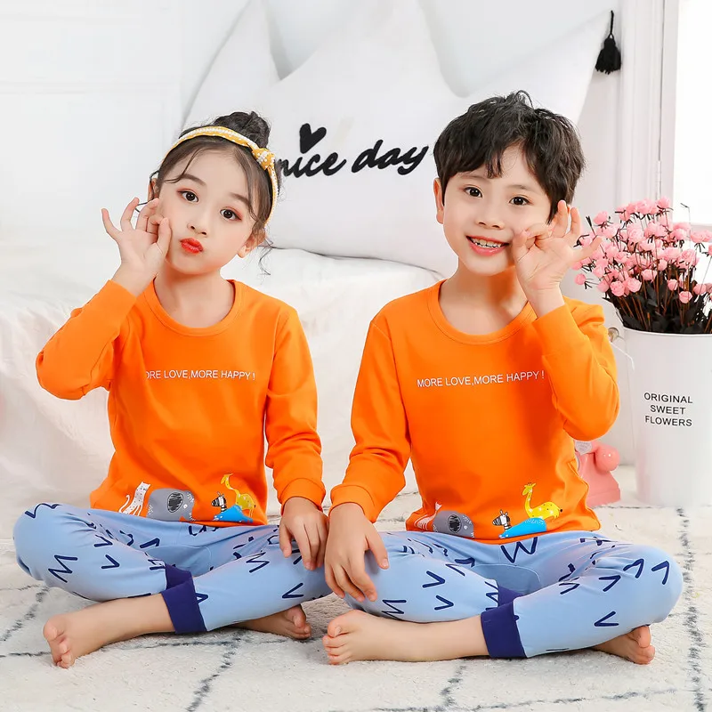 Новая осенняя одежда для мальчиков пижамы для девочек с длинным рук...