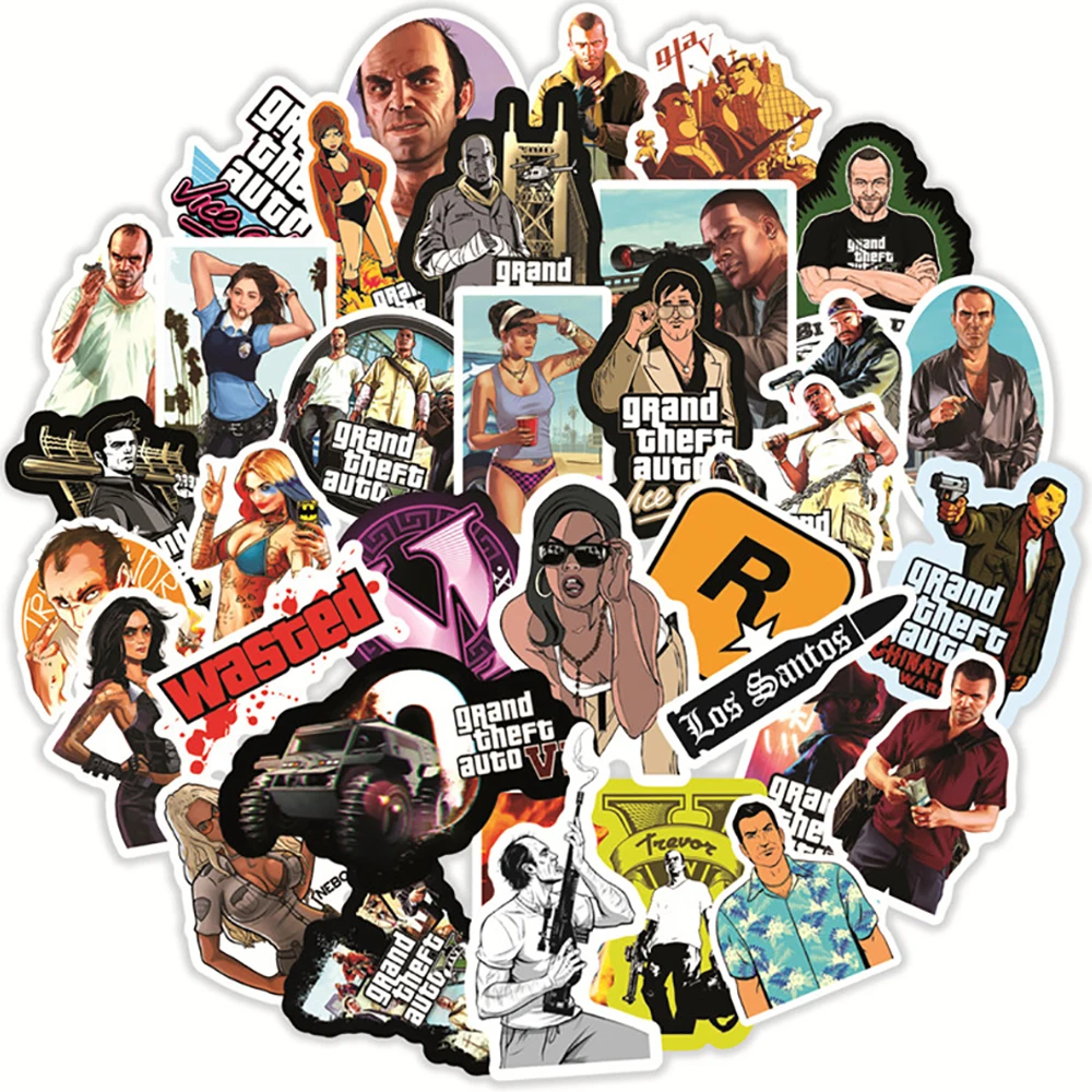 50 шт. Стикеры из игры GTA граффити Дорожный чемодан Гитара Холодил...