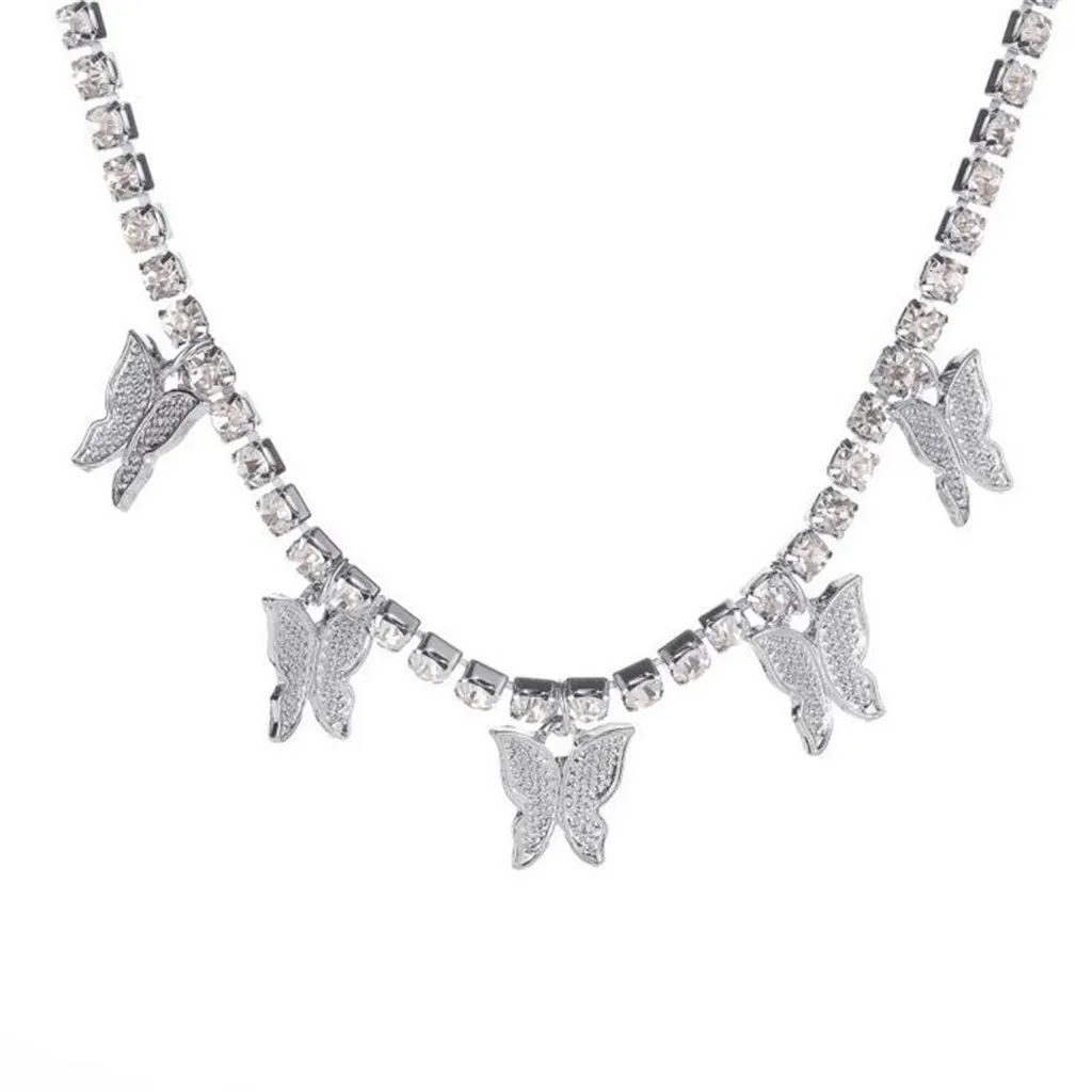 Кубинская Бабочка ожерелье стразы бабочка кулон ожерелье Хип-хоп ак...