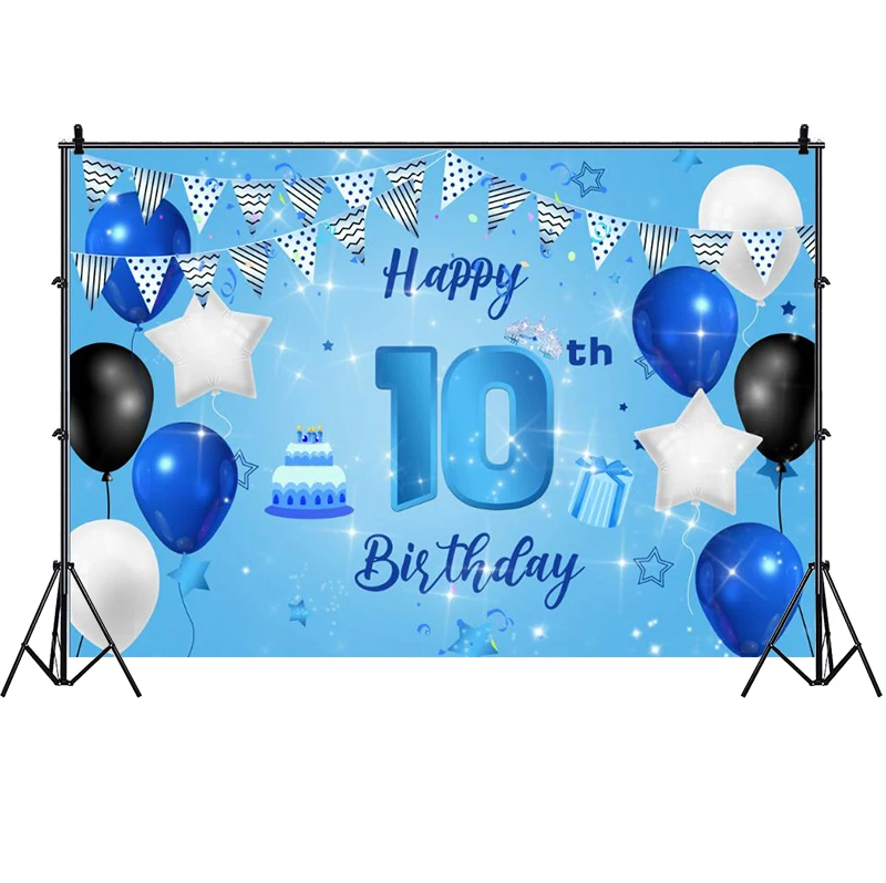 Голубой фон для фотографий 10-й вечеринки в честь Дня рождения мальчиков воздушный шар фон для фотографий декорация для фотографирования баннер