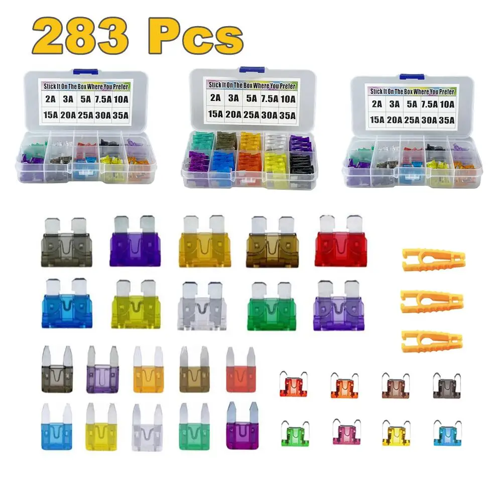 283 Шт Автомобильные Предохранители Ассортимент Авто смартфона blade предохранители Стандартный небольшой мини микро типа 2A для 35A в 3 ящик для хранения