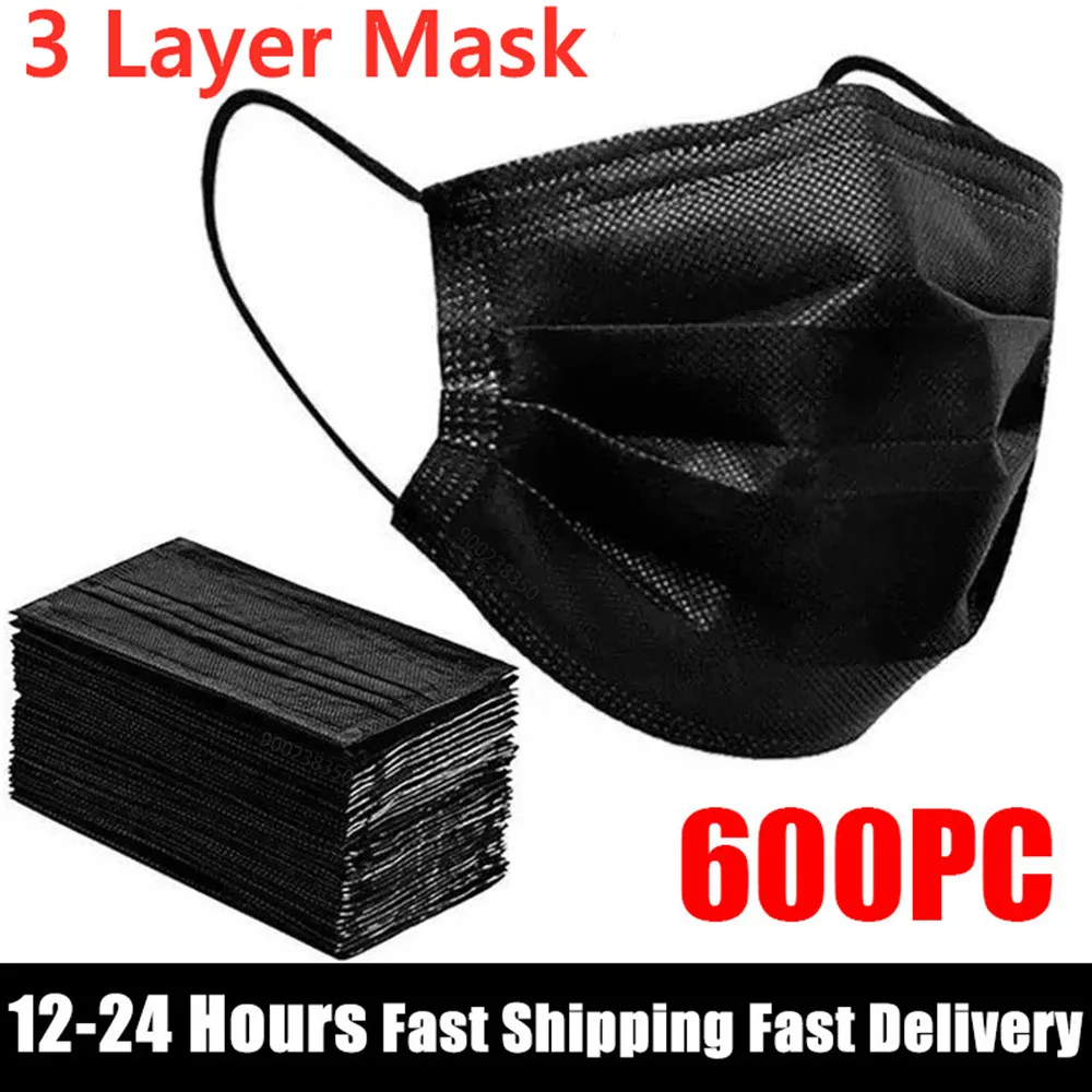 10-600 шт. Одноразовые черные маски лица 3 слоя PLY-фильтр защитная...