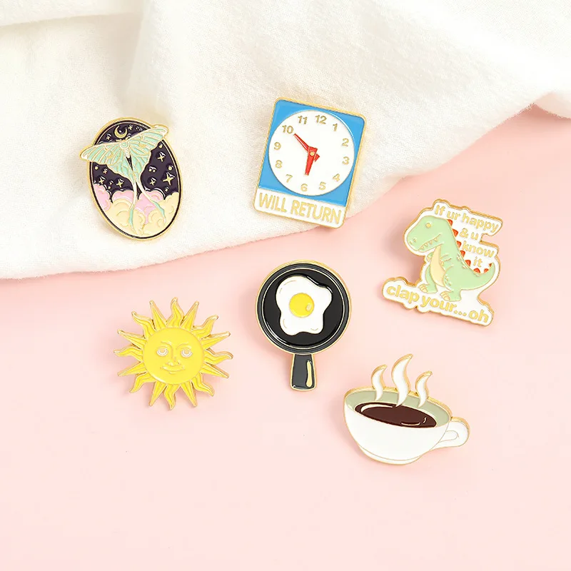 Мультяшный Луна фаза бабочка булавка будильник солнце кофе динозавр брошь сумка Украшение краска значок подарок для друзей