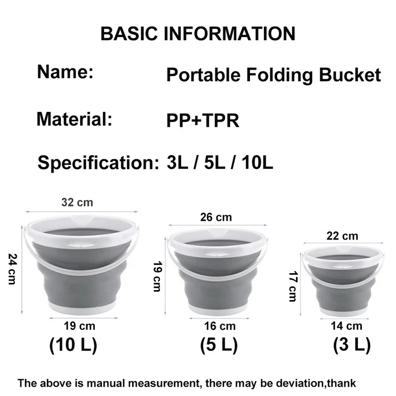1. Это отлично подходит для кемпинга, использования в помещении или на открытом воздухе и очень легко хранить. Каждый большой размер ведра составляет 33,2 см в верхней части, 20,5 см в основании и 23,7 см в высоту. Складывается до 5 см, когда не используется. Вмещает 10 литров воды. Вы также можете выбрать ведро среднего размера для пикника на открытом воздухе, рыбалки, мытья автомобиля и т. Д. 3. Открытый складной силиконовый ведро, складной, легкий вес, легко носить 4. Подходит для кемпинга, рыбалки, автомобильных путешествий, пеших прогулок и многих видов активного отдыха.