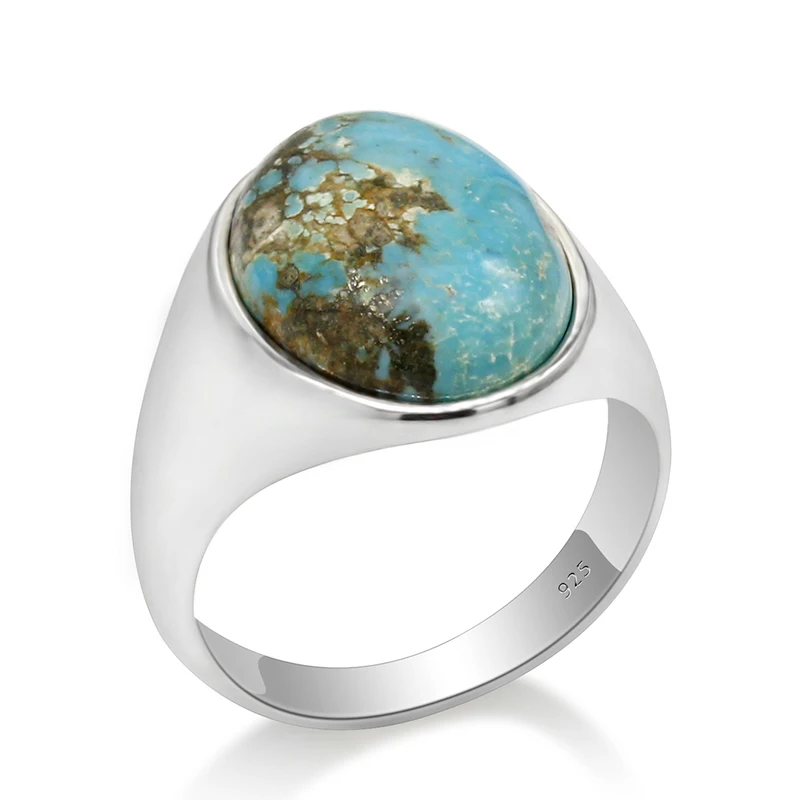 Модный большой овальной вставкой из натуральная бирюза камень мужское кольцо в винтажном стиле 925 серебряные обручальные кольца для женщин в стиле панк Турецкая ювелирные изделия с драгоценными камнями