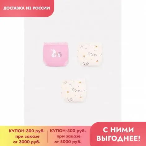 CROCKID, трусы уп, для девочек, К 1909-3уп, розовая вишня сливки белочки