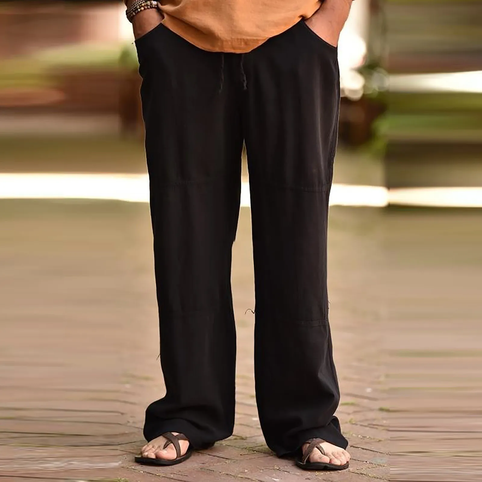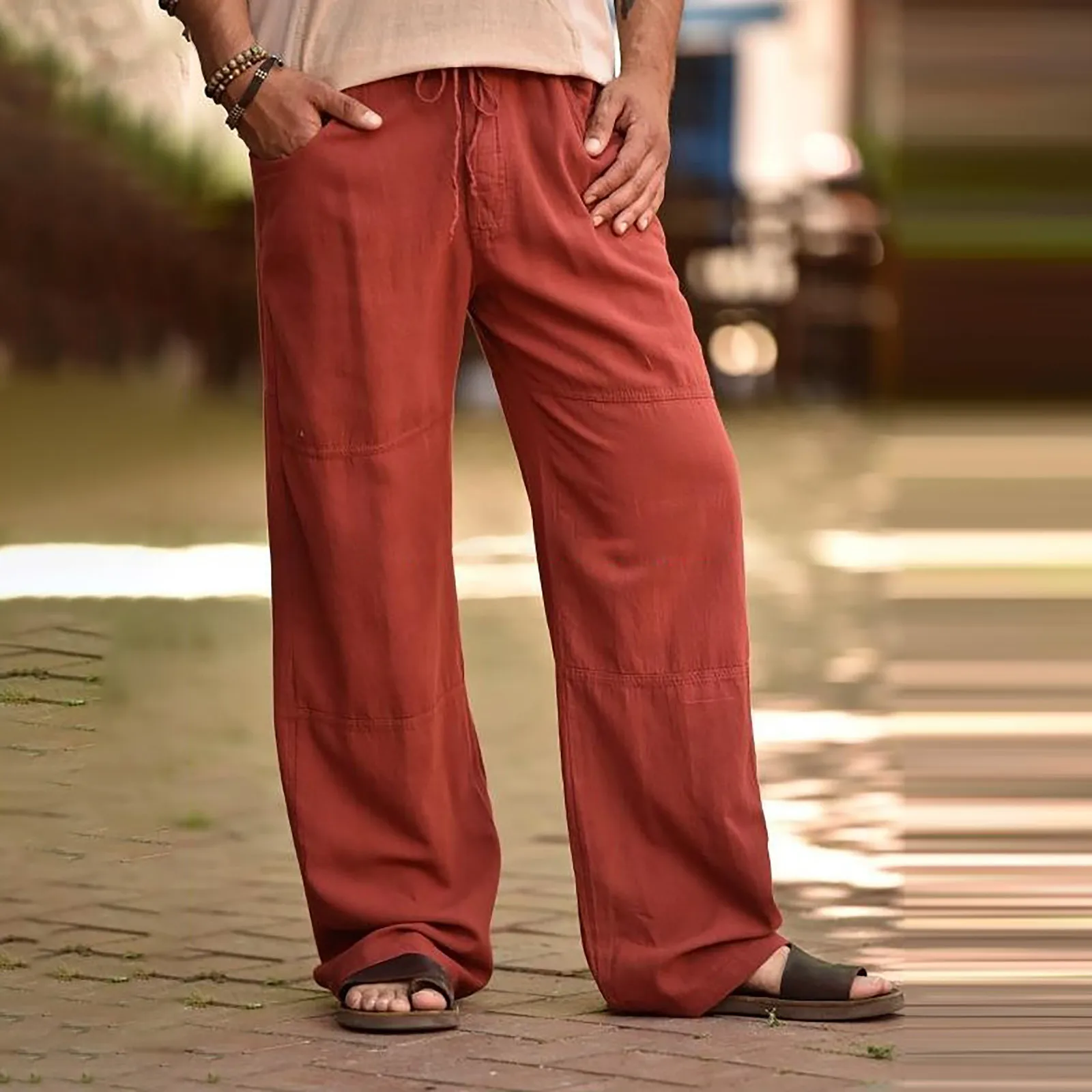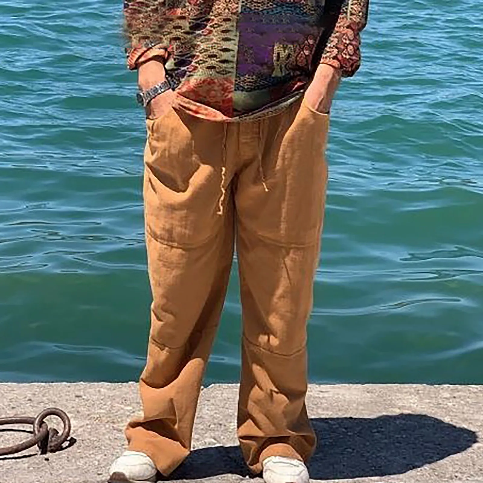 Мужские модные хлопковые льняные повседневные длинные брюки с карманами и эластичной резинкой на талии размера плюс