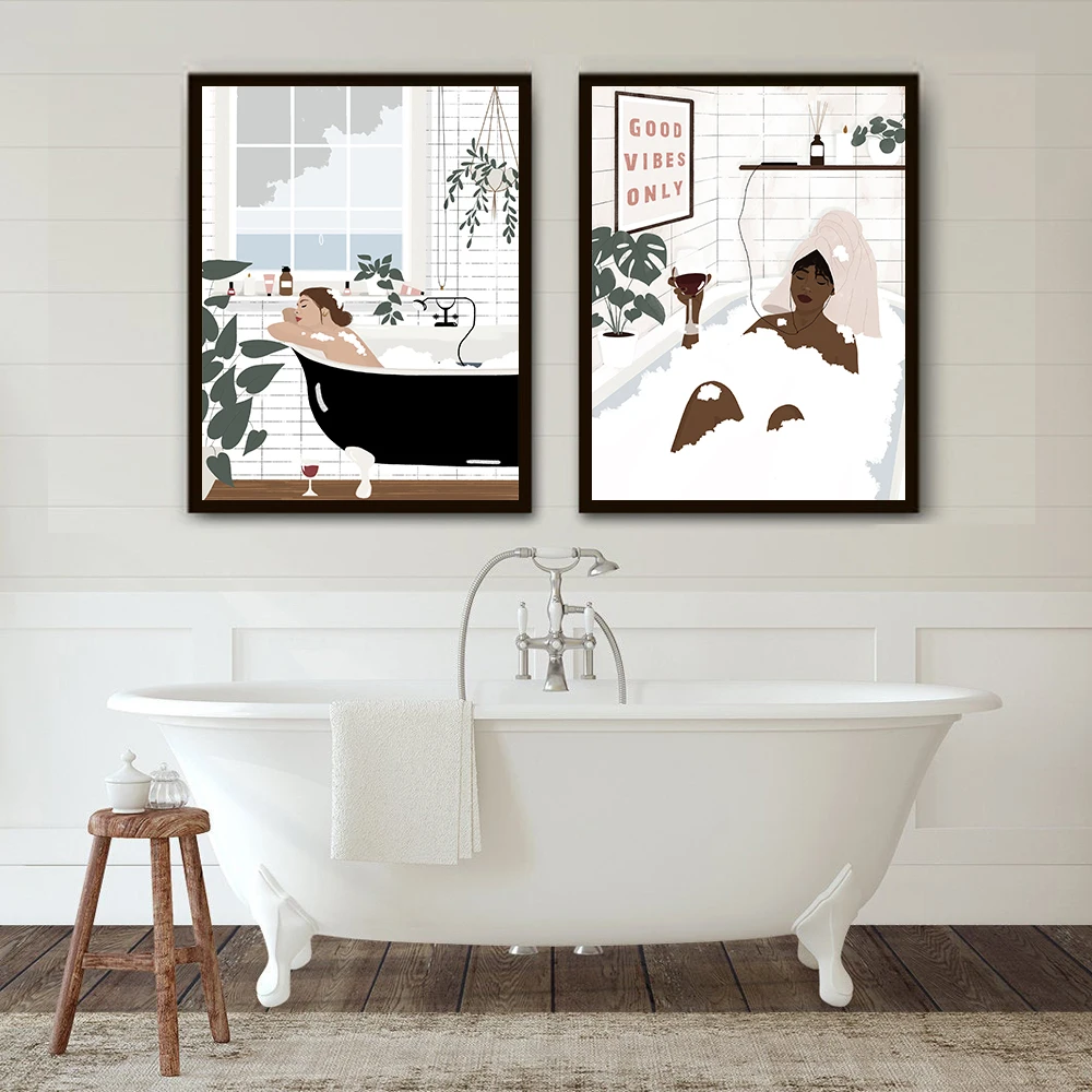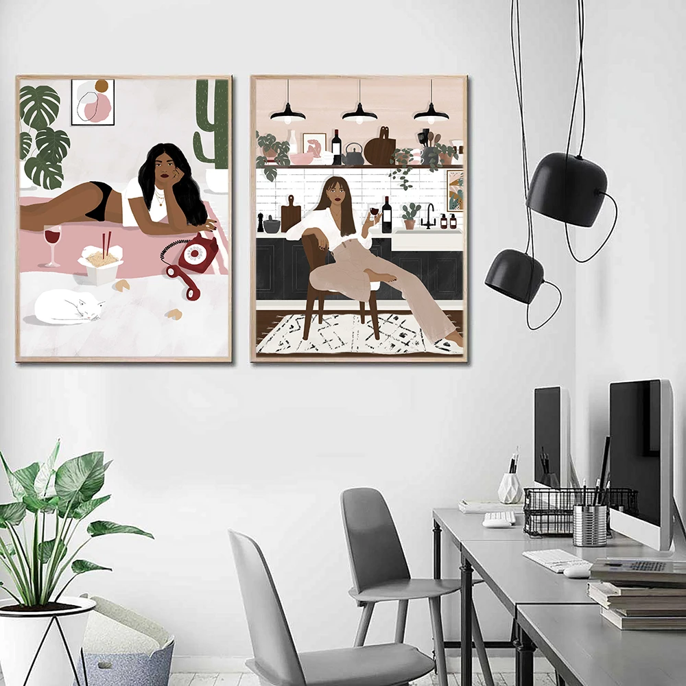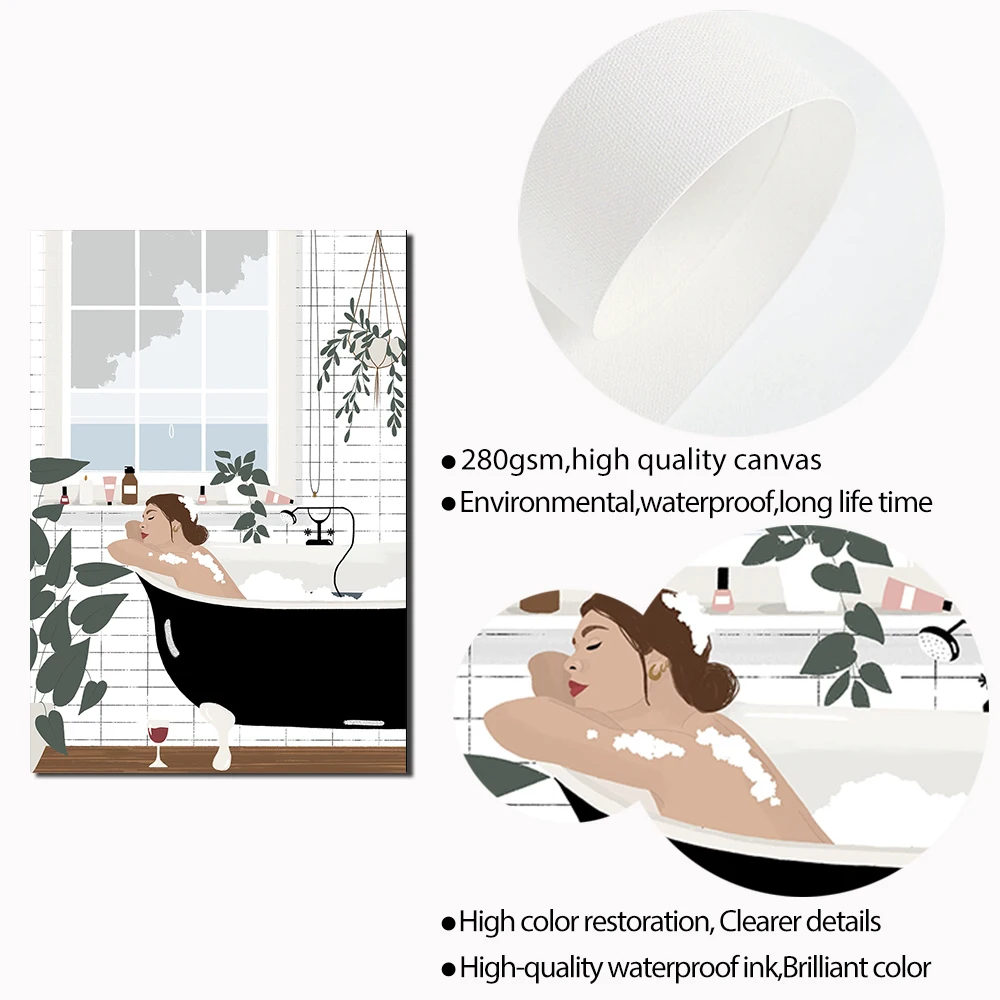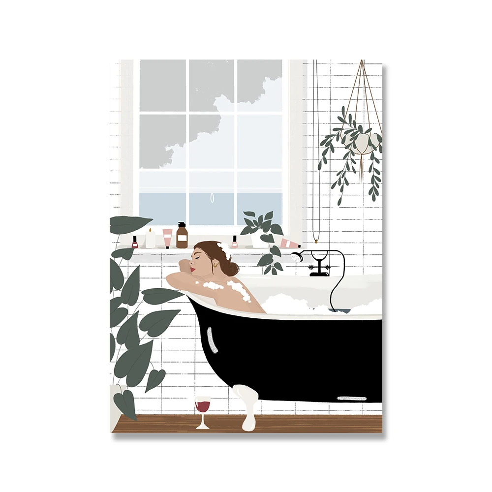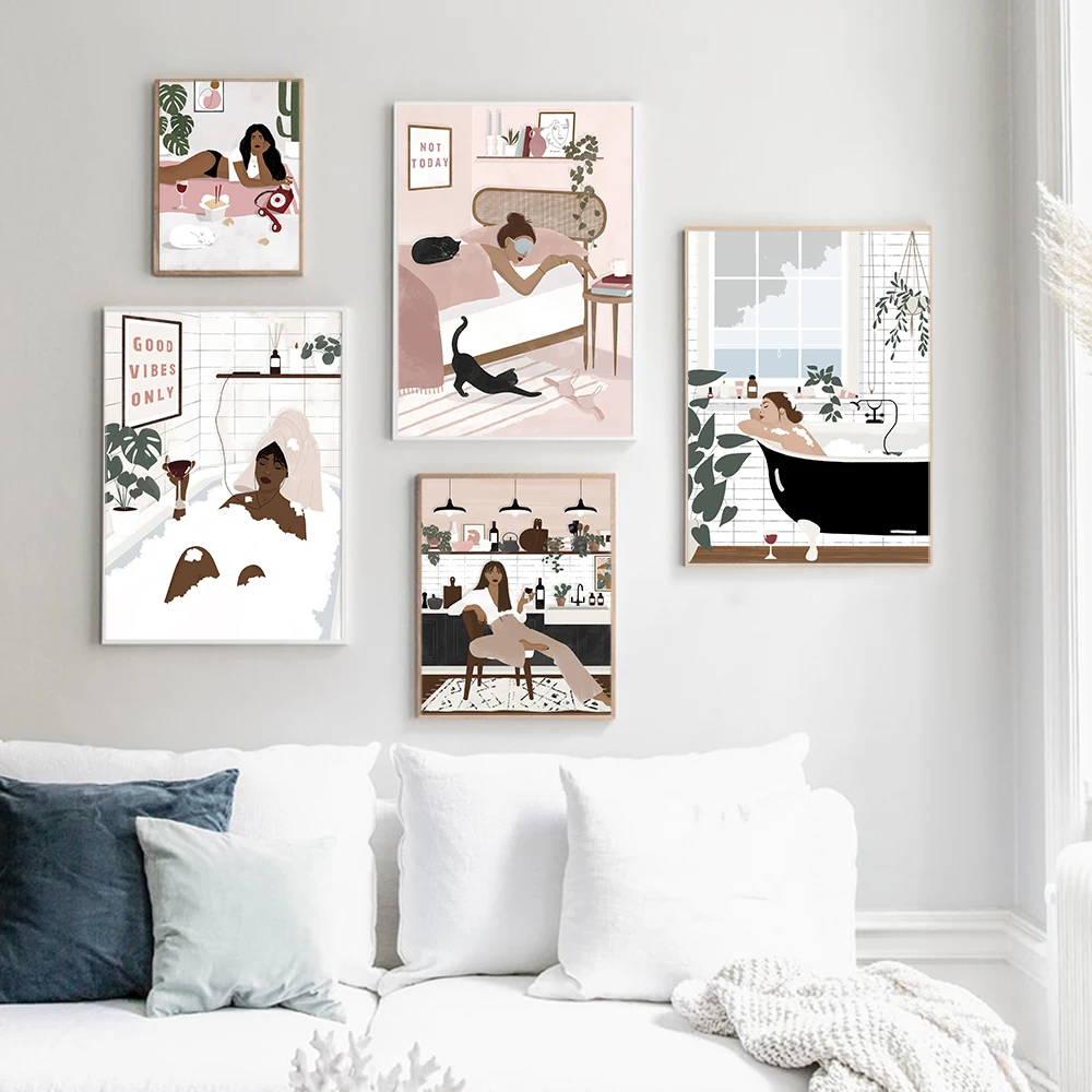 Модный женский постер на холсте для ванны, питья вина, абстрактная картина, Скандинавская Настенная картина для девушки, спальни, ванной комнаты, Декор
