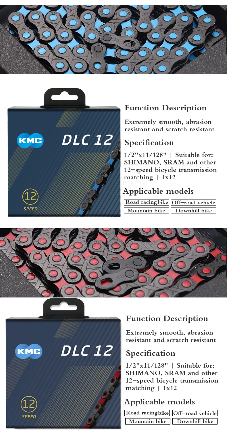 Горный велосипед KMC Chain DLC, Ультралегкая 12-скоростная цепь для горного велосипеда Shimano Sram, черный, красный, синий, зеленый цвета, 12 В