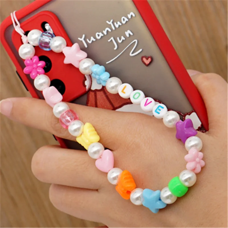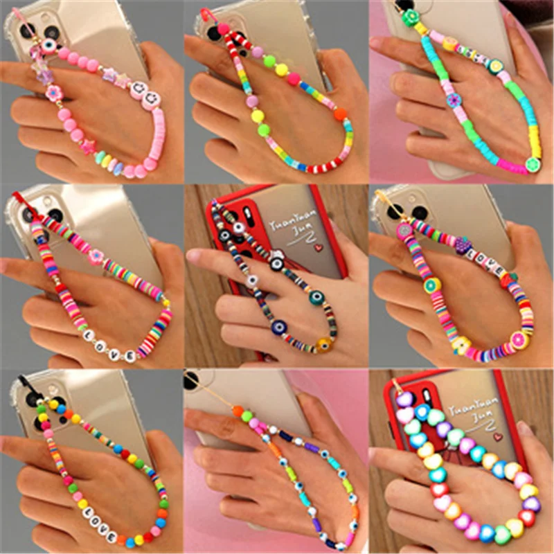 Новинка 2021, модный ремень для телефона, цветной ремешок с улыбкой и жемчугом, веревка из мягкой керамики для телефона, Женский висячий шнур