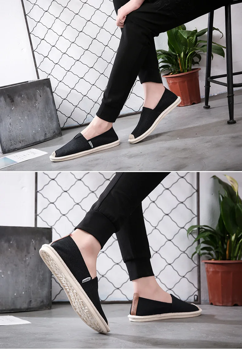 UPUPER/дышащая льняная повседневная мужская обувь; Тканевая обувь в стиле «Старый Пекин»; Парусиновая летняя обувь для отдыха на плоской подошве; Обувь для вождения в рыбацком стиле; Впитывает влагу.