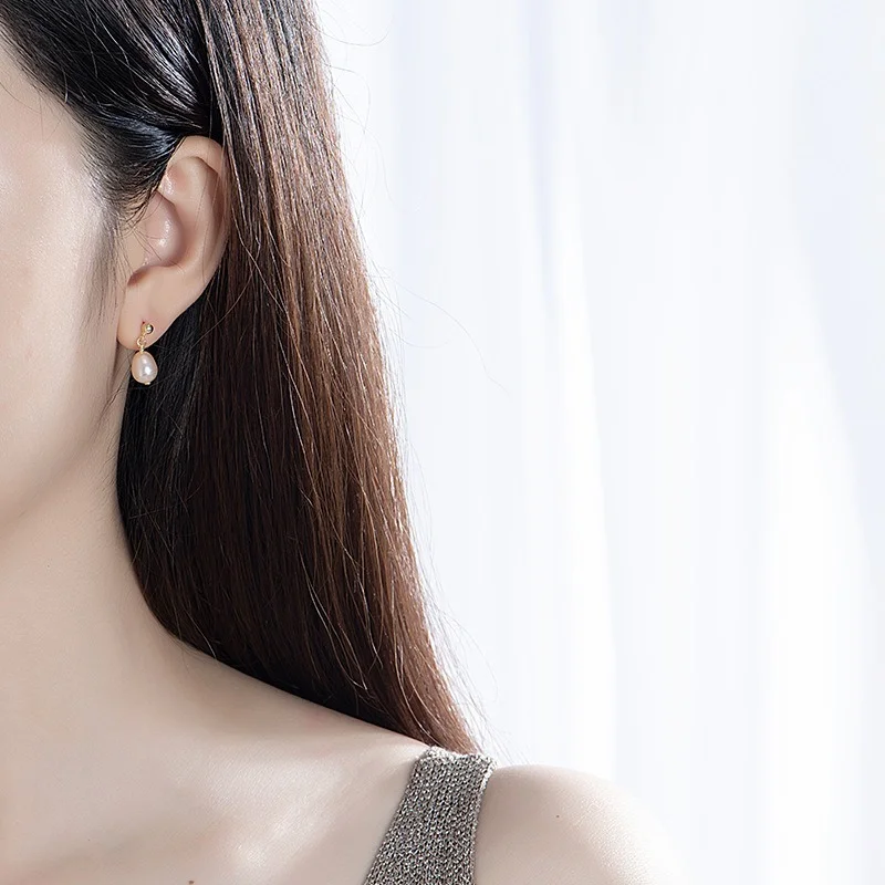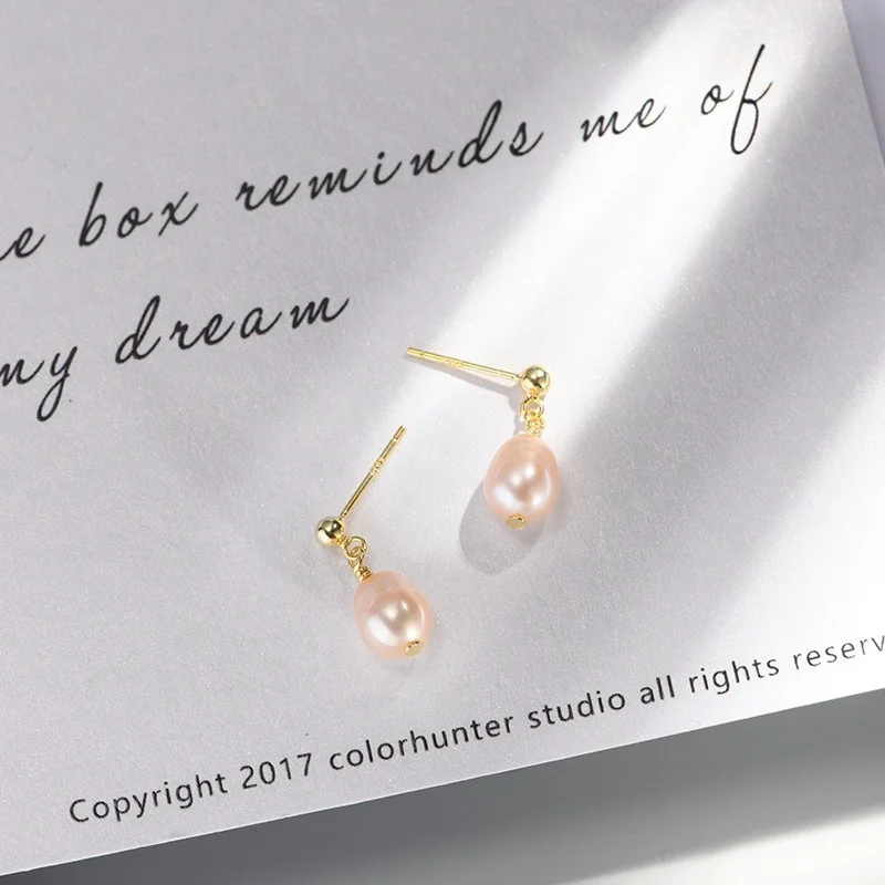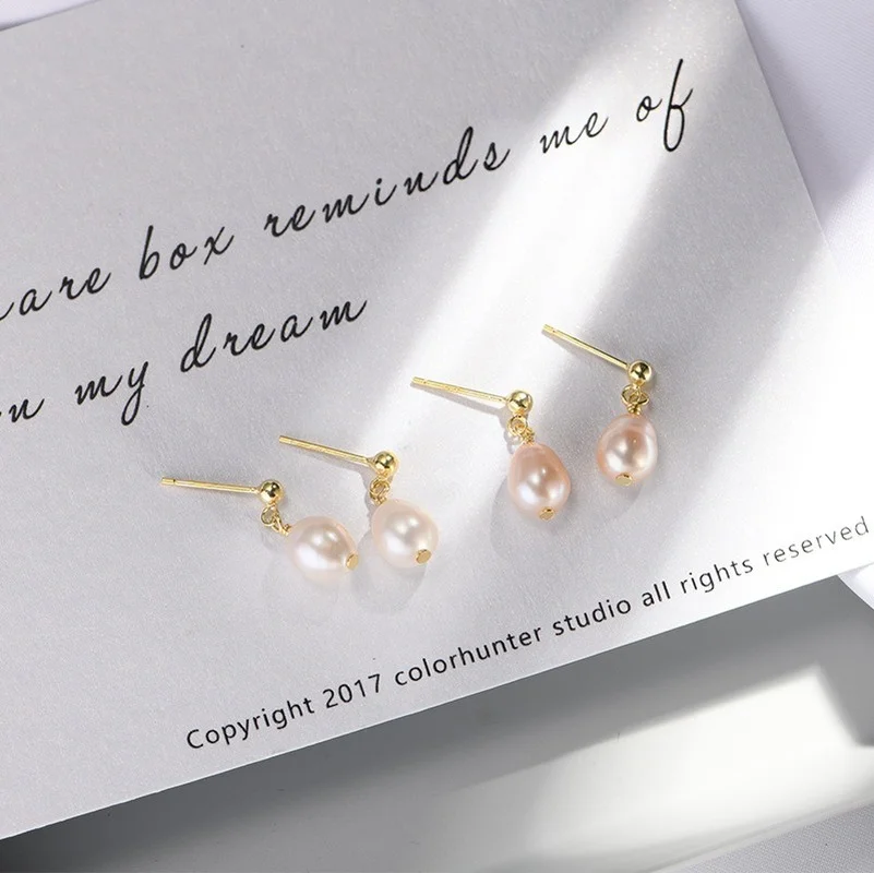 Серьги-гвоздики женские из 925 серебра пресноводный барочный жемчуг пробы, шикарные очаровательные