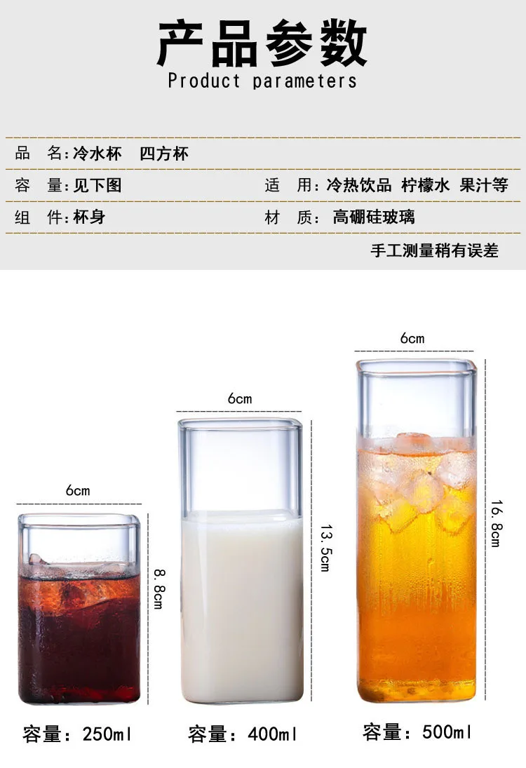 Большой квадратный простой прозрачный стакан для холодной воды, бол...