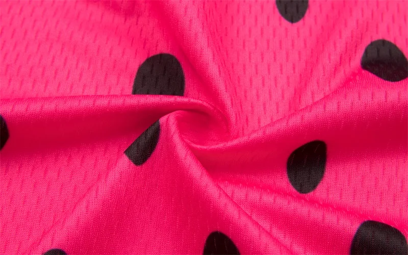 Ткань одежды изготовлена из полиэфирной сетки, которая обладает хорошей влагопроницаемостью и воздухопроницаемостью, обладает высокой эластичностью и упругостью, что делает ношение более комфортным и близким к телу. Ткань обладает охлаждающим эффектом и дезодорирующей функцией.