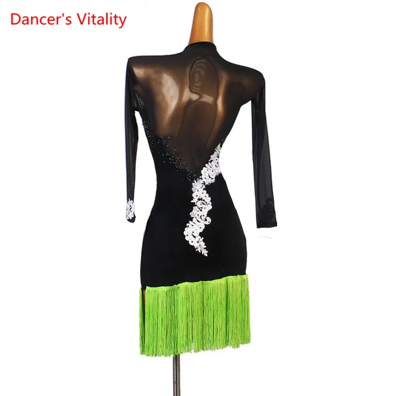 Платье для латинских танцев; Кружевная юбка с кисточками; Одежда дл...