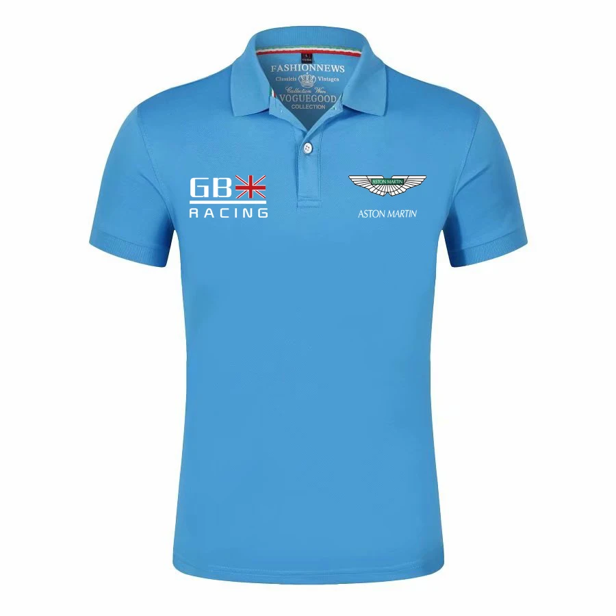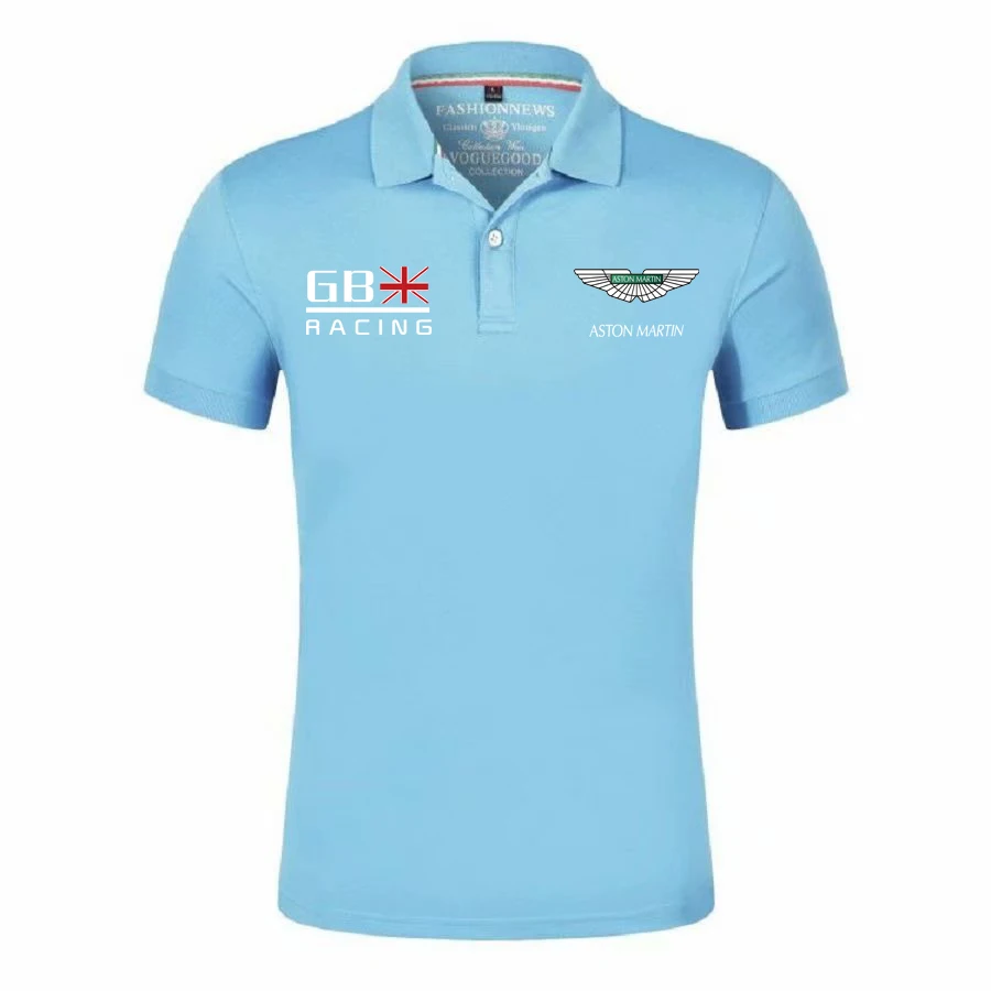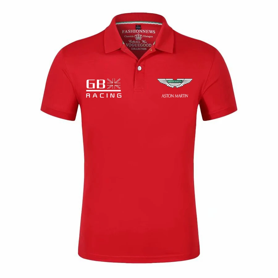 Мужская летняя рубашка-поло с коротким рукавом, классические дышащие рубашки для гольфа от бренда Aston car, мужские рубашки-поло, одежда для гонок