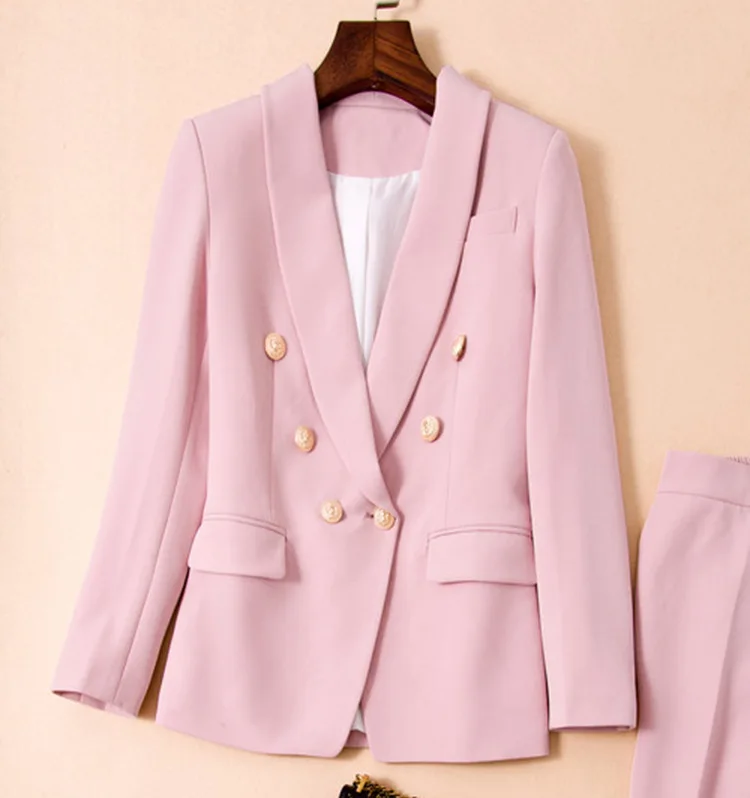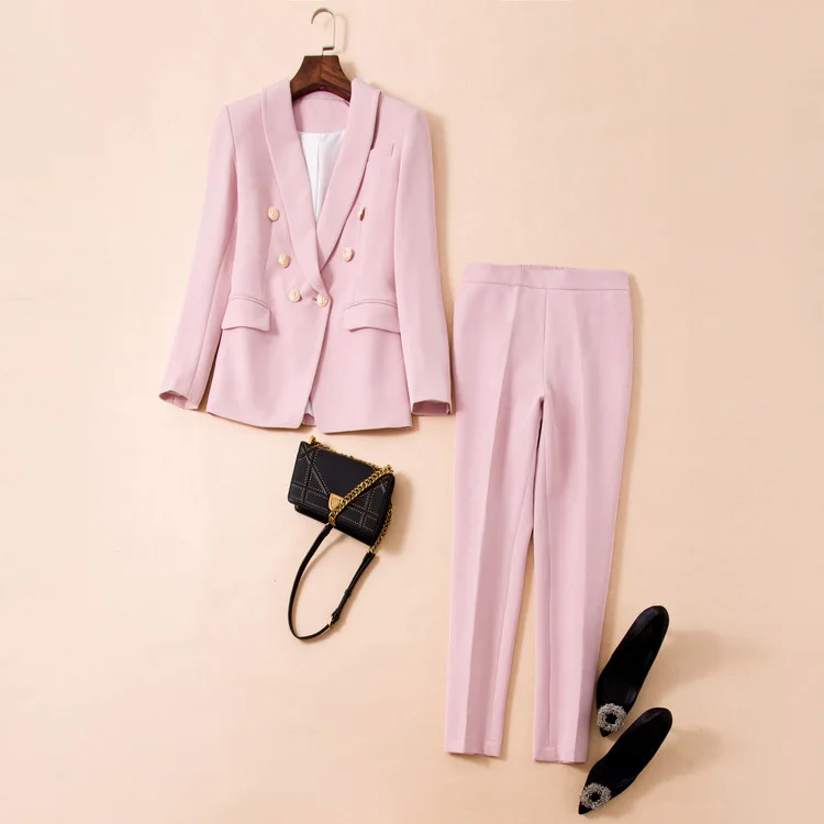 Женский брючный костюм, костюм из двух предметов, брючный костюм абрикосового цвета с двубортным пуговицами, деловой костюм, 2021