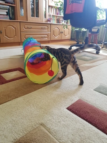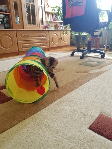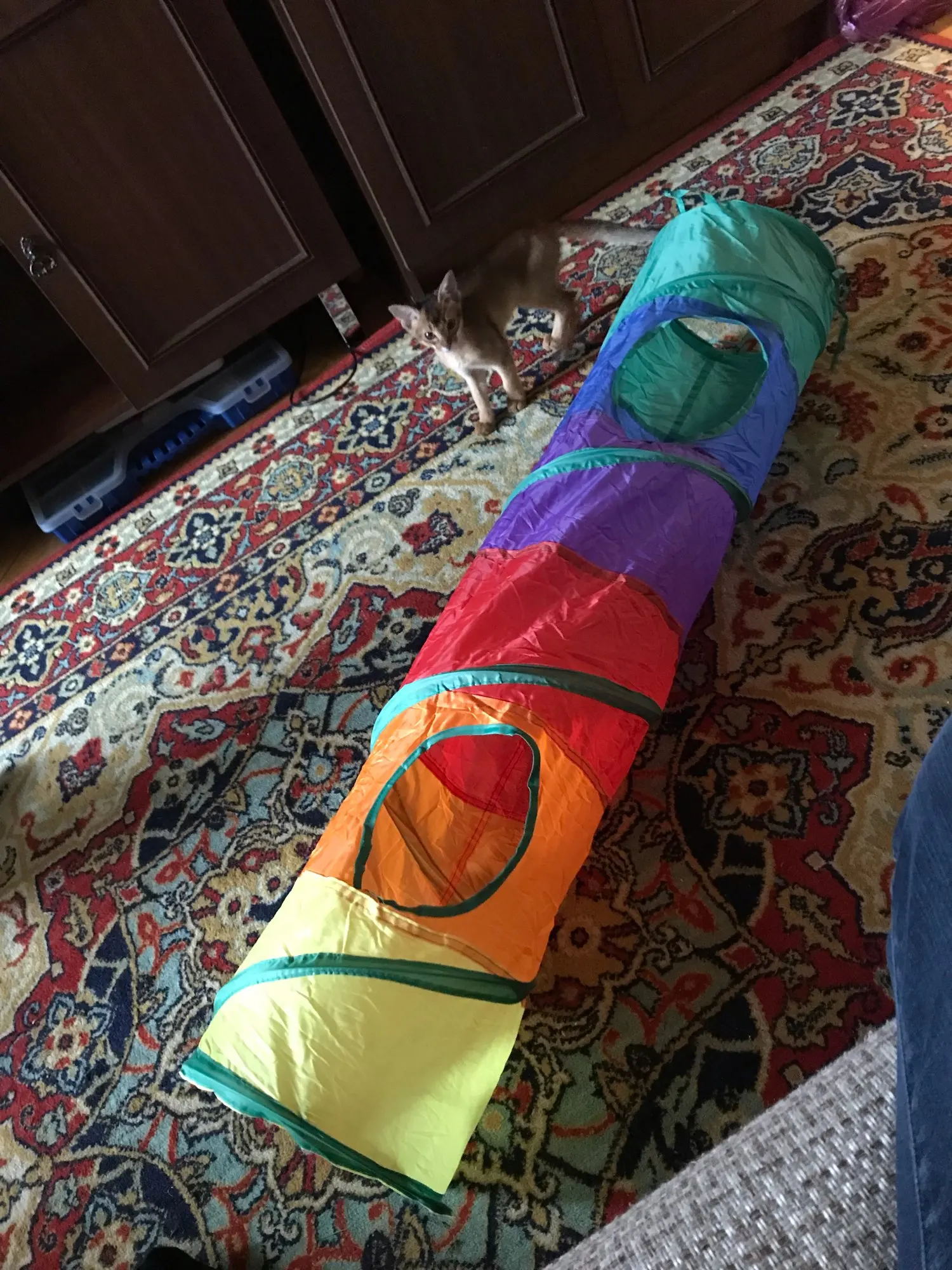 Тоннель отличный, кошкам понравился! Все как на картинке, качество вполне приличное, размер в самый раз. Коту нравится с разбега в него залетать! дошёл очень быстро, до СПб дней 10