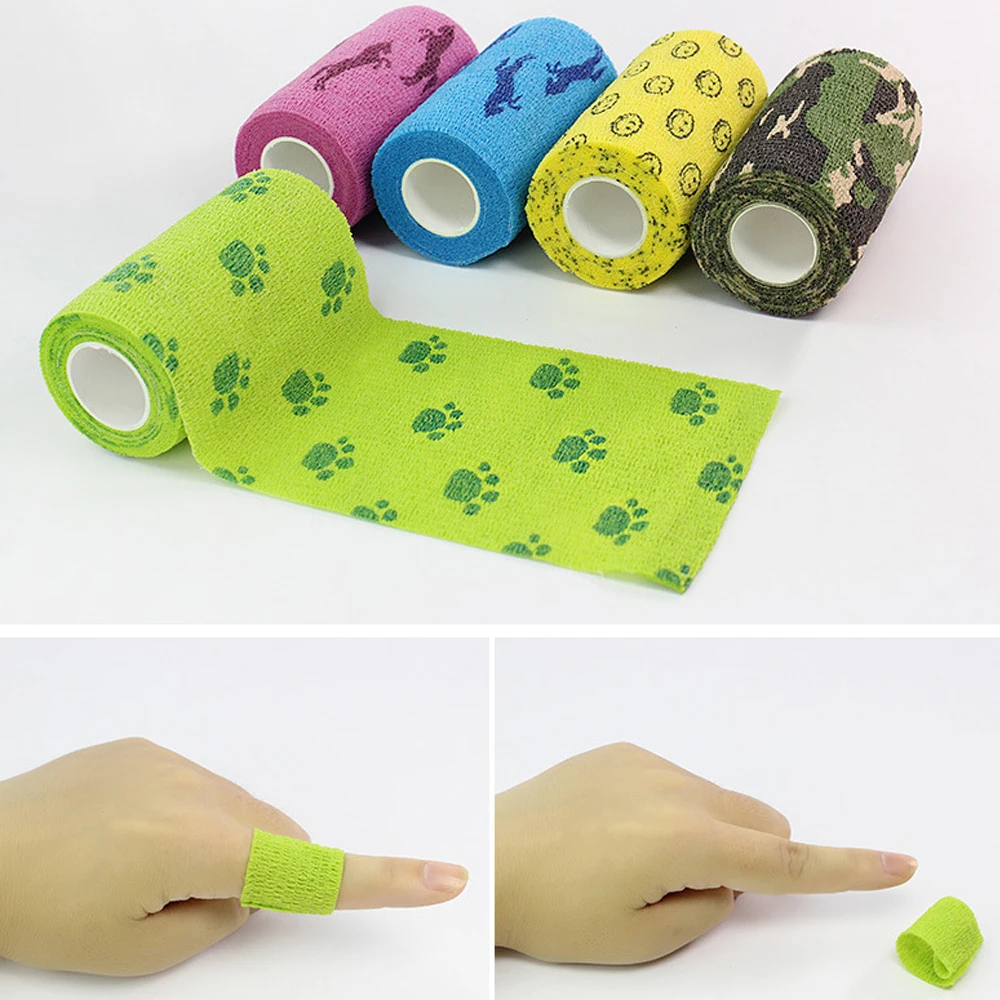 Самоклеящаяся эластичная повязка спортивная защита для пальцев Защита для запястья колена оберточная лента с принтом комплект медицинской первой помощи лента для домашних животных
