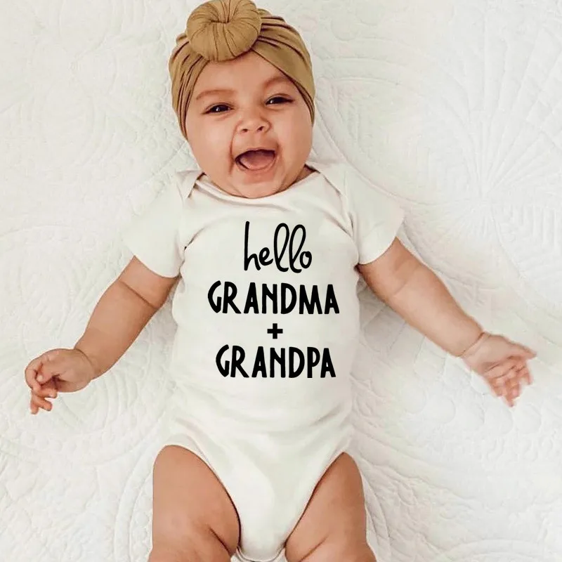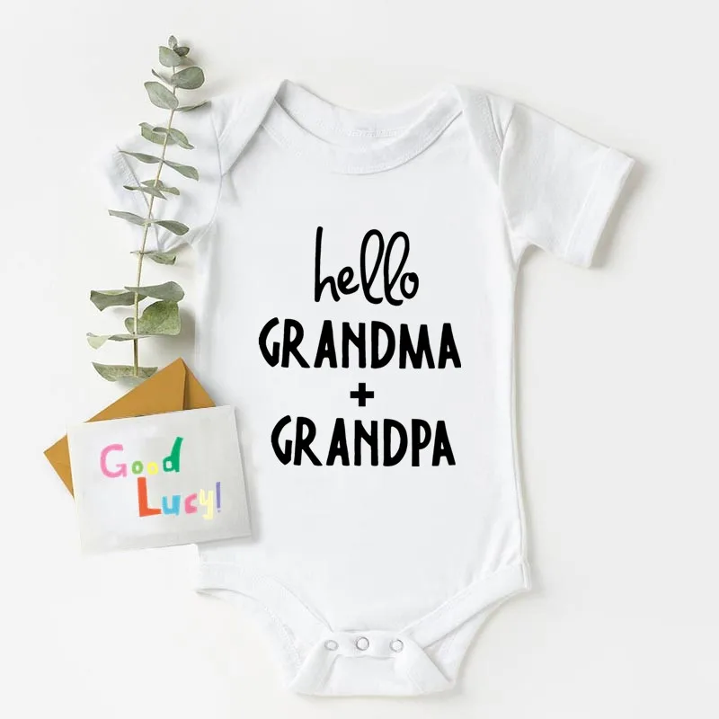 Здравствуйте бабушка + дедушка 100% хлопок от Carter's, детский костюмчик, новорожденный короткий рукав комбинезоны для маленьких мальчиков и девочек; Комбинезоны для маленьких детей; Одежда