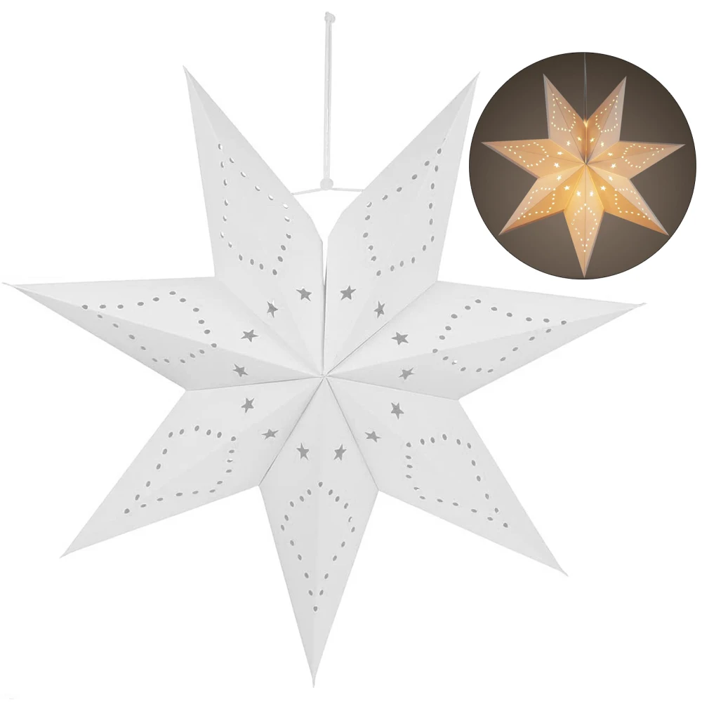 Крышка для светсветильник Ника в виде звезды, абажур, белое украшение для вечерние, ажурные бумажные фонари диаметром 45 см для дома
