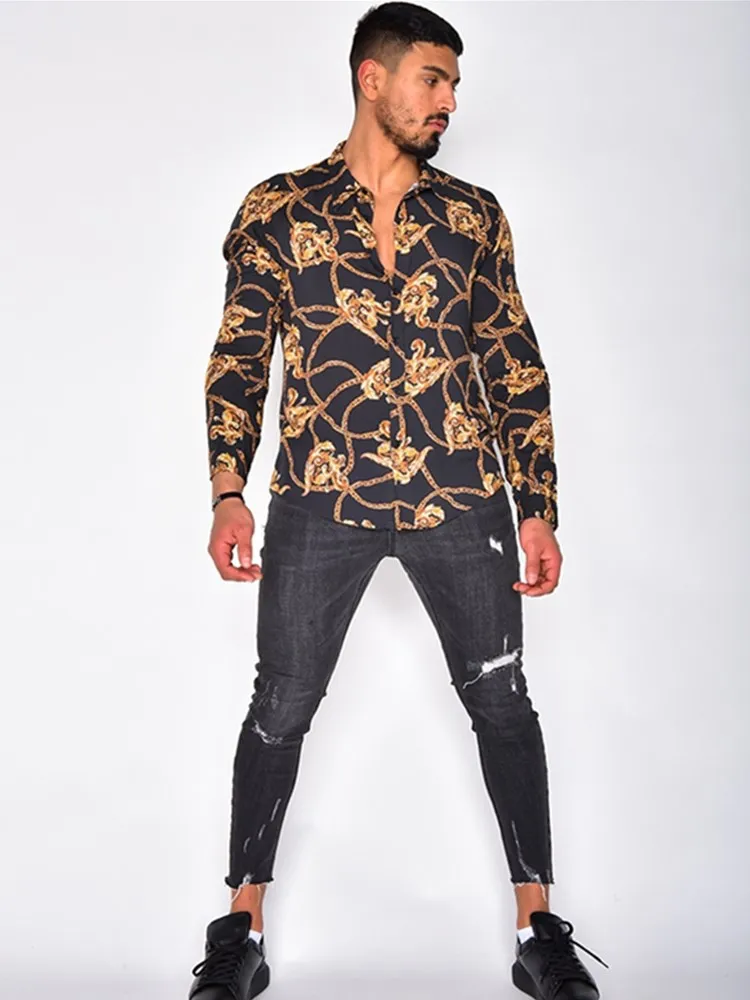 Новые модные мужские королевские рубашки в стиле барокко с цифровой печатью черепа Роскошные брендовые дизайнерские классические рубашки причудливые повседневные Клубные стильные