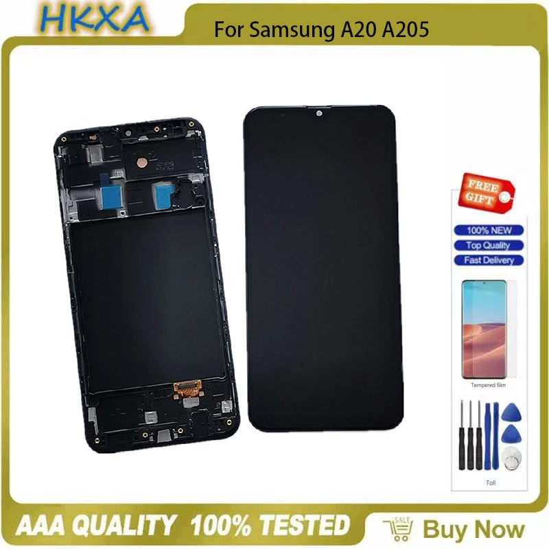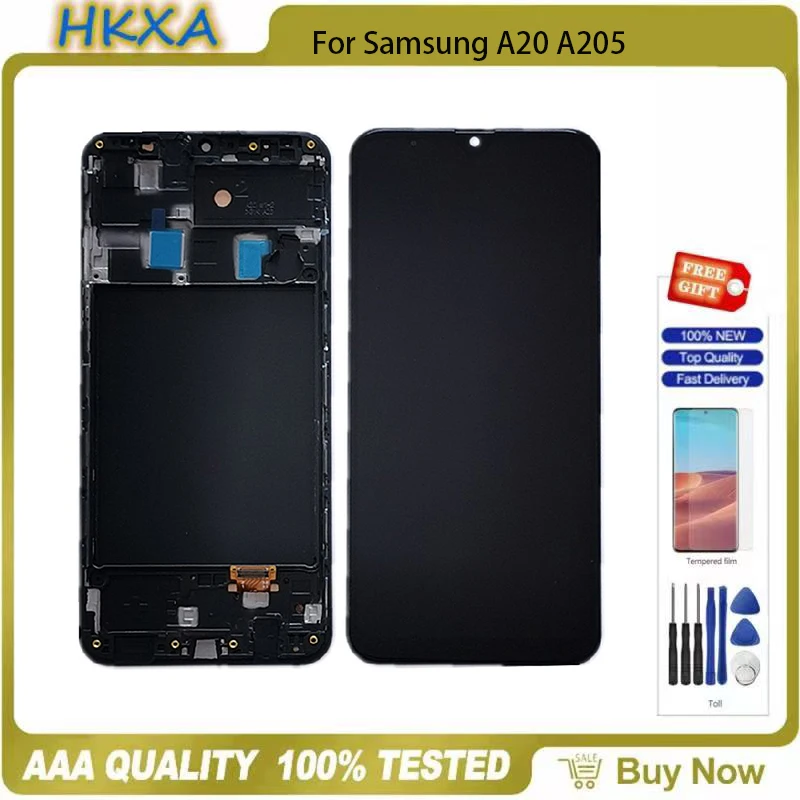 ЖК-дисплей AMOLED для Samsung A20 A205, сенсорный экран, дигитайзер в сборе для Samsung A20 A205, экран с рамкой + Инструменты