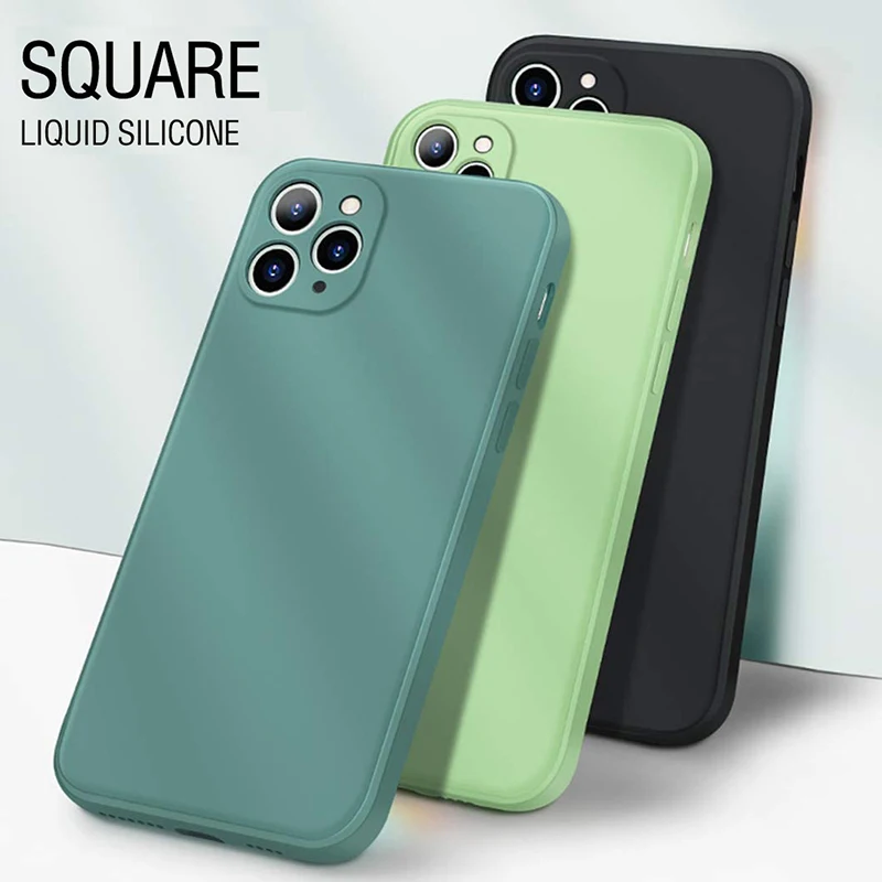 Квадратный чехол из жидкого силикона для iPhone XS 11 13 Pro Max 12 Mini XR, чехлы, мягкая задняя крышка из ТПУ для iPhone 7 8 6 6S Plus SE 2