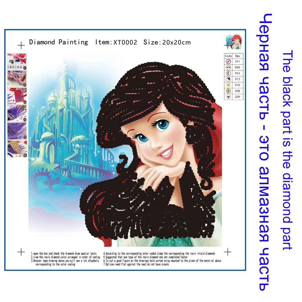 Алмазная живопись 5D сделай сам, черное искусство, Дисней, принцесс...