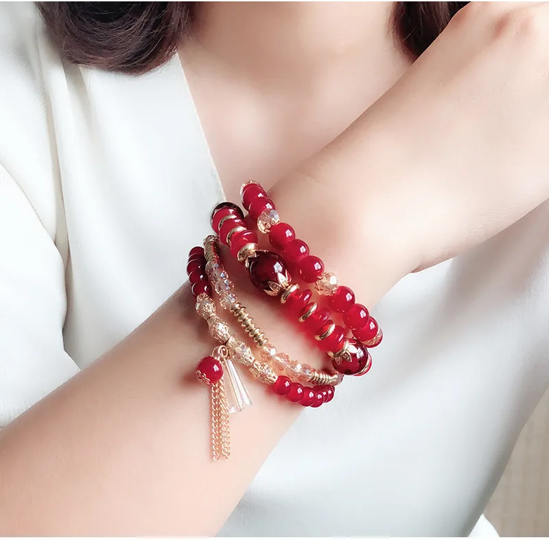 Комплект из 4 браслетов из бисера и кристаллов, женский модный браслет в богемном стиле, ювелирные изделия