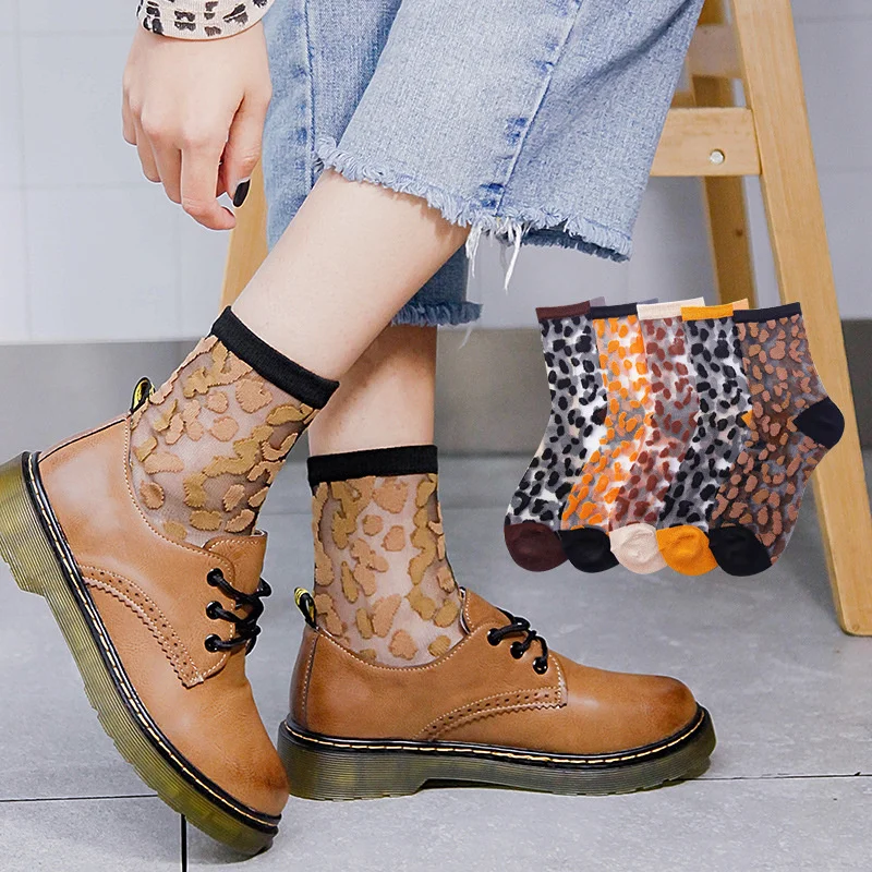 Сексуальное Кружевное Сетчатое платье ажурные носки смешанные волокна прозрачный стрейч эластичные ботильоны из пряжи и тюля, тонкий леопардовая Для женщин дышащие носки 1 пара = 2 шт.